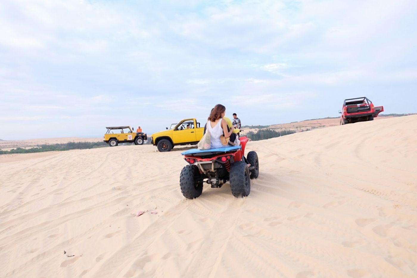 ถ้ารถจี้ปจะนั่งได้มากที่สุด 5 คน และรถ ATV 2 คนค่ะ คือเราอยากนั่ง ATV มากๆเพราะอ่านรีวิวมาว่าสนุกกว่านั่งรถจี้ป เราเลยแบ่งเป็นสองทีมค่ะ 3 คนนั่งรถจี้ป และเรากับเพื่อนอีกคนนั่งรถ ATV