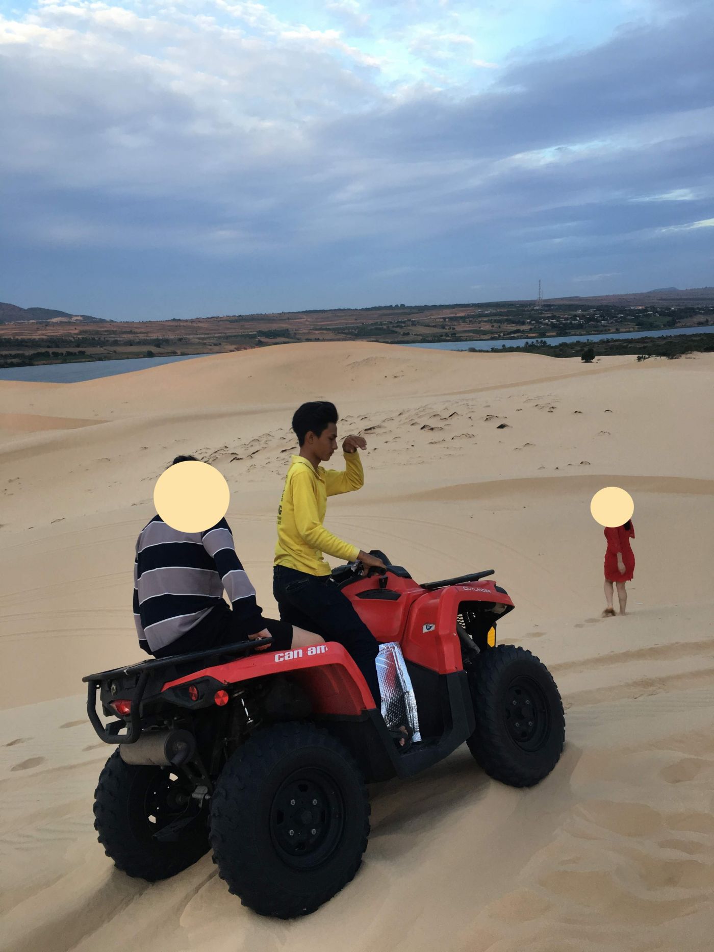 รีวิว ไม่สวยเท่าที่แรกค่ะ ทะเลทรายจะแดงกว่าในรูปมากๆ เพราะเราแต่งรูปเพิ่มด้วย ลงมาถ่ายรูปกันสามคน แล้วก็ไม่ได้เดินขึ้นไปดูข้างบนเลย เพื่อนที่เหลือขอรอที่รถเพราะเหนื่อยกับการ 'เดิน' ไปที่ทะเลทรายขาวที่แรกแล้วค่ะ 5555