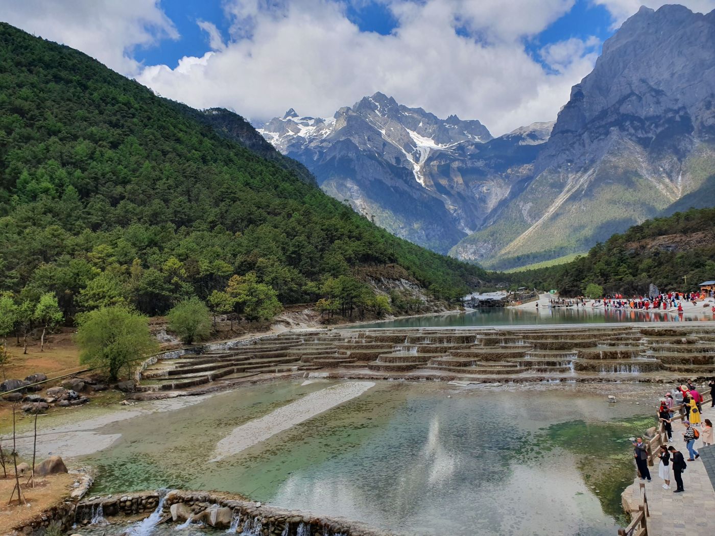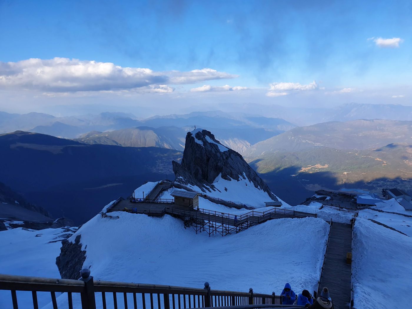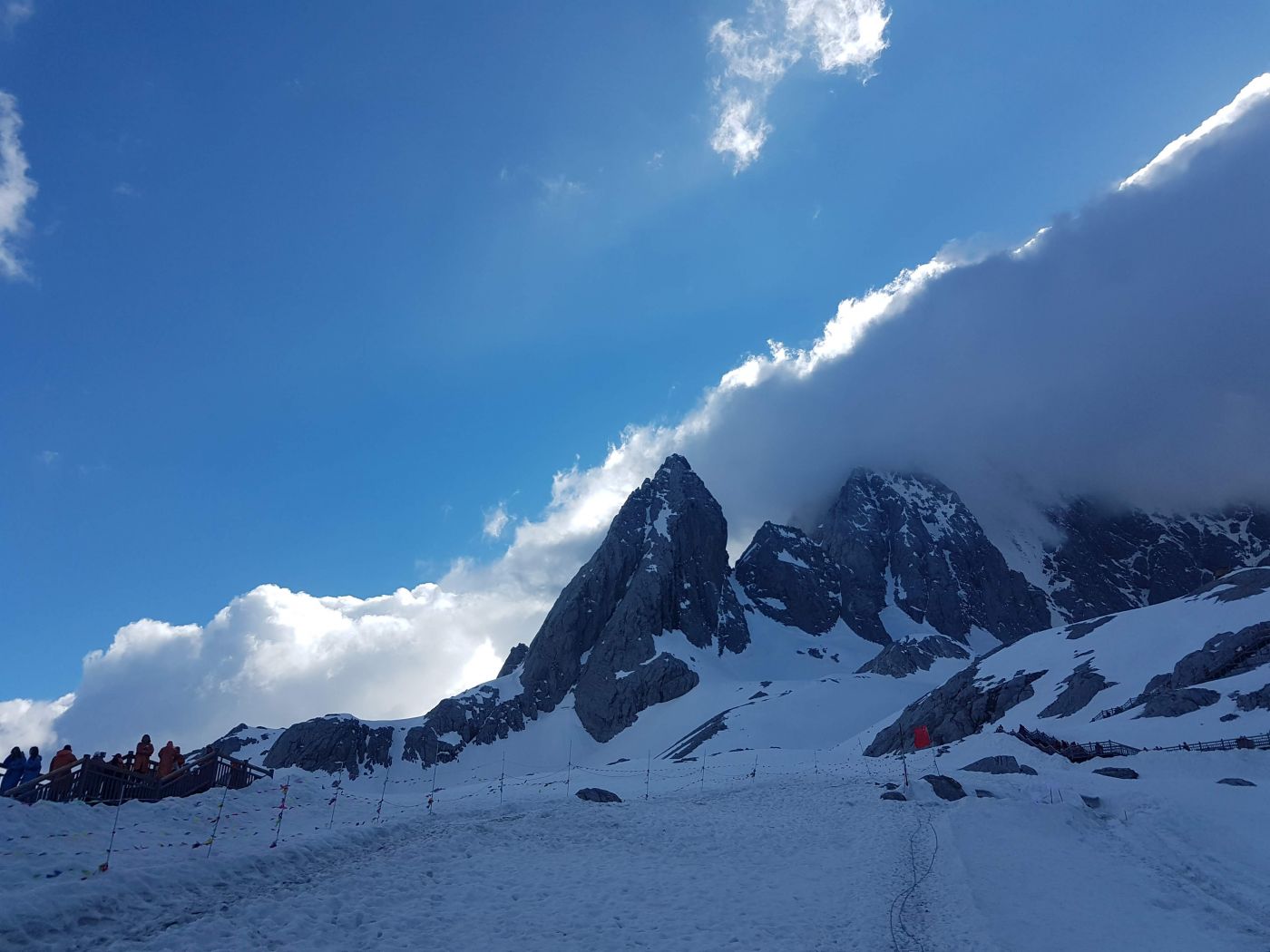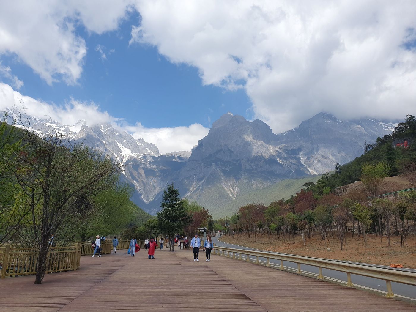 หลังจากดูโชว์เสร็จ ต่อไปคือเดินทางไปภูเขาหิมะมังกรหยก ระหว่างทางก็จะเห็นภูเขาหิมะใกล้ๆ และอากาศก็เริ่มเย็นขึ้นเรื่อยๆ