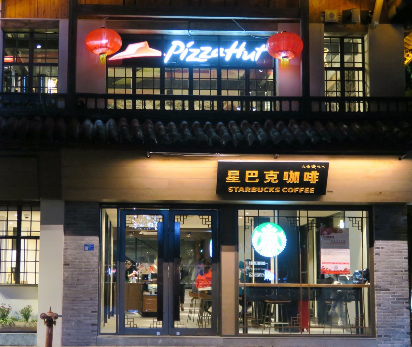 รูปนี้เป็นรูปที่เราชอบ เพราะเป็นของฝรั่งอะ pizza กับ starbuck แต่ต้องอยู่ใน old town จีน ก็คือปรับภาพลักษณ์แนวโรงเตี้ยมย้อนยุคไปอีก ข้างในก็ตกแต่งเป็นแนวจีนๆ เหมือนกัน พวกเราก็เดินเล่นแปบนึง ก็นั่งรถเมล์กลับที่พัก พรุ่งนี้ไปแชงกรีล่าต่อ เย้