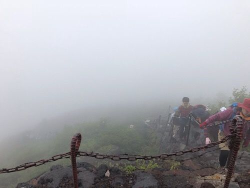 ผ่านที่พักไปอีก 2 หลัง ทางขึ้นเริ่มเปลี่ยนอย่างหน้ามือเป็นหลังมือ จากที่เป็นทางที่ค่อนข้างเรียบและไม่ชันมาก ทางข้างหน้านี้ชันอย่างกับปีนบันได! พื้นเป็นก้อนหินและดินที่ไม่มีระเบียบ ฉันคิดในใจว่า นี่สินะของจริง! ยังดีที่อากาศไม่ได้ร้อนมาก เราจึงยังรู้สึกค่อนข้างใจเย็นเสียดายที่มองไม่เห็นวิวอะไรเพราะมองออกไปมีแต่หมอกขมุกขมัว ฉันสูดอากาศเต็มปอด1ครั้งก่อนย่างเท้าขึ้นเส้นทางใหม่นี้