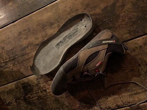 ทางหินนี้โหดกับเท้าพอควร พื้นขรุขระเสียดสีกับรองเท้าทุกก้าว หลังจากปีนอยู่พักหนึ่งก็เกิดเรื่องไม่คาดฝันขึ้น! ส้นรองเท้าปีนเขาที่ฉันใส่มา(รองเท้าที่ฉันไม่ได้ใส่มานานกว่า5 ปี) หลุดออกจากตัวรองเท้า!!!