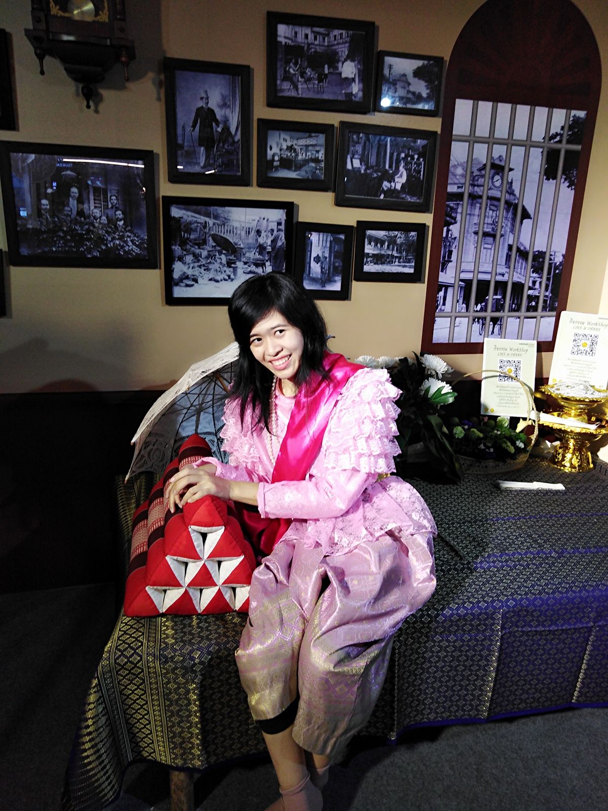 ช่วงสงกรานต์พอดีเลย ก็ไปสิคะ พอเดินถึงชั้นG นิทรรศการอยู่ไหนวะ หาไม่เจอ ฉันกับแม่ก็เลย ไปสิงอยู่แถวๆ บูธ AIIZ เพราะมีเสื้อเซล 555 หลังจากนั้นเราก็เดินไปเรื่อยๆ ก็ถึง ในนิทรรศการนี้จะมี บูธของ พิพิธบางลำพูและพิพิธภัณฑ์เหรียญ มาให้ความรู้ พร้อมมุมถ่ายรูปชุดไทยสวยๆ ให้เราได้ถ่าย (ฟรี) (เห็นแบบนี้ก็จัดไปสิคะ จะรออะไร) ไม่ใช่มีแค่นี้นะ นิทรรศการนี้ยังมี มุม เสาชิงช้า และป้อม พระสุเมรุจำลอง รถรางจำลอง เจดีย์ทราย ลำลอง มาให้ถ่ายรูปและนั่งพัก นอกจากนี้ยังมีการนำพระจากจัดดังๆ9 วัด มาให้สรงน้ำ หลังจาก ฉันถ่ายรูป จนพอใจแล้ว