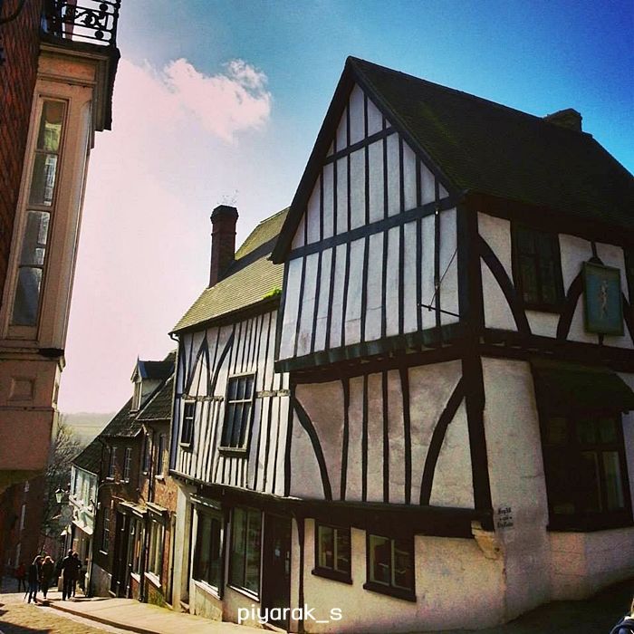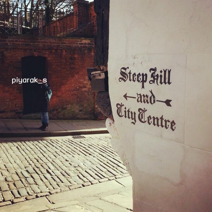 จากสถานีรถไฟ ข้ามทางรถไฟกับถนนไปไม่ไกลมาก ก็จะถึงโซนตัวเมืองที่มีทั้งห้างสรรพสินค้าและอื่น ๆ เหมือนเมืองทั่วไป แต่ถ้าเดินตรงขึ้นไปเรื่อย ๆ (แผนที่ดูไม่ยาก) ก็จะถึงส่วนที่เรียกว่า Steep Hill ซึ่งย่านนี้เป็นเนินชันพอสมควร แต่เป็นเขตเมืองเก่าที่มีทั้งปราสาทและมหาวิหาร (cathedral) และอาคารสมัยทิวดอร์จำนวนมาก