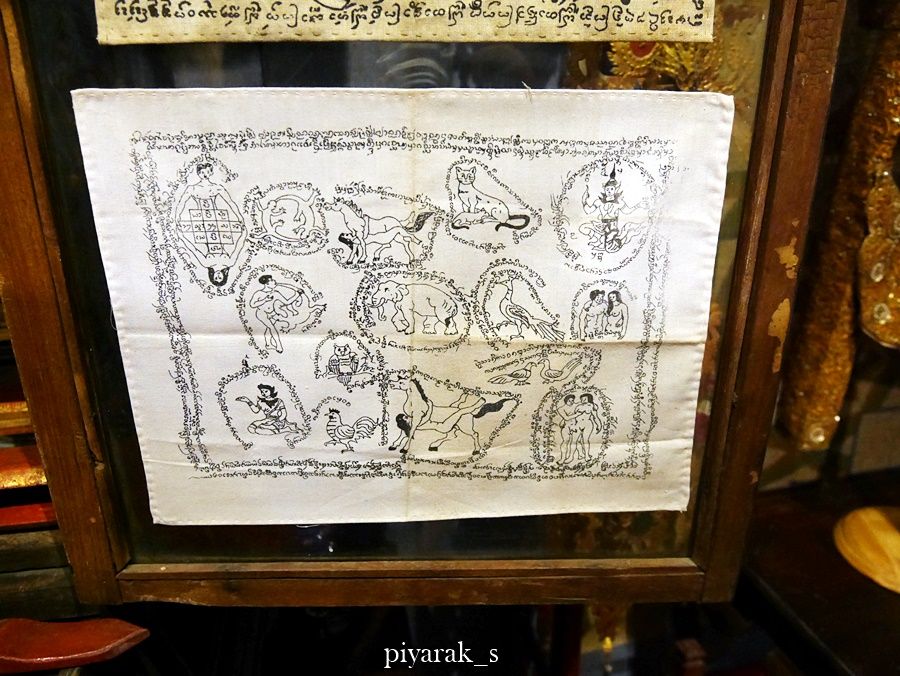 สำหรับวันนั้น พอจบจากห้องสุดท้ายแล้ว ก็มีคำถามจากสมาชิกของพิพิธภัณฑ์ถามขึ้นรู้ไหมว่า ผ้าที่เอามาทำผ้ายันต์ของล้านนานี้ ส่วนใหญ่ทำมาจากผ้าอะไร คำถามนั้นทำให้เราสามคนมองหน้ากันไปมาด้วยสายตาว่างเปล่าอยู่พักหนึ่ง ก่อนที่จะได้รับคำเฉลยว่า ผ้ายันต์ทางล้านนาส่วนใหญ่ทำมาจากผ้าห่อศพค่ะ เพราะฉะนั้น ผ้ายันต์ที่เห็น ๆ กันอยู่ที่ห้องนี้ก็เป็นอดีตผ้าห่อศพทั้งสิ้น โดยก่อนที่จะนำศพไปเผาก็ดึงเอาผ้าห่อศพมาก่อน แล้วเก็บเอาไว้เขียนอักขระอะไรกันตามกระบวนการทีหลัง ผ้าห่อศพที่เอามาใช้ก็เป็นผ้าห่อศพของพ่อแม่ที่เสียชีวิต หรือของพระ สมัยนี้ ไม่ต้องใช้ผ้าห่อศพ แต่สมัยก่อน ไม่มีฟอร์มาลีน ไม่มีโลงทำความเย็น ก็ต้องใช้ผ้าห่อศพเอาไว้ ไม่ให้ศพอยู่ในสภาพที่ดูไม่ดีเท่าไหร่