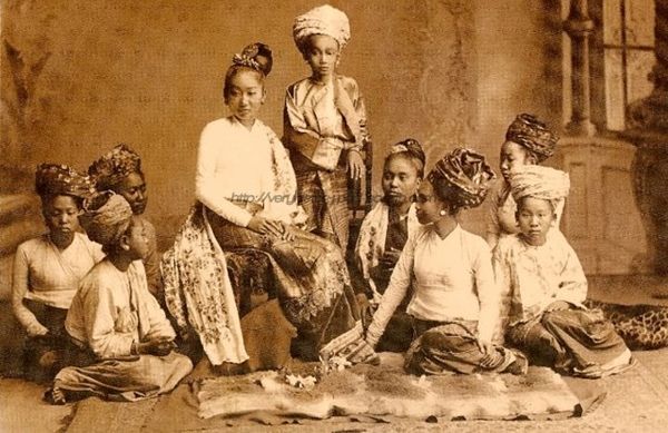 ถ้าใครเคยอ่านเรื่องพม่าเสียเมืองของ ม.ร.ว. คึกฤทธิ์ หรือประวัติศาสตร์พม่าเกี่ยวกับกษัตริย์องค์สุดท้าย คือ พระเจ้าสีป่อกับพระนางศุภยลัต ก็คงจะเคยเห็นภาพฉลองพระองค์เต็มยศเป็นชั้น ๆ แบบนี้ ชุดเต็มยศแบบนี้เรียกว่าชุด 'กาบคำ' หรือ มหาลดา ไม่ต้องอธิบายก็คงพอจะเดาได้จากลักษณะของชุดแล้วนะคะ ซึ่งชุดนี้จะใส่กับรองเท้ารูปหงส์ และแม้จะยังไม่รู้ว่าเป็นของเจ้านายองค์ไหน แต่ผู้บรรยายสันนิษฐานว่า น่าจะเป็นชุดผู้หญิงทั้งคู่ เพราะตัวเล็กมาก