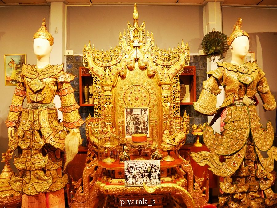 ถ้ายังจำกันได้ ภาพที่ติดหน้าหน้าของบ้านตรงข้างประตูทางเข้าพิพิธภัณฑ์จะเป็นภาพชุดเจ้านายพม่าอยู่สองข้างบัลลังก์สีทอง และนี่คือสิ่งที่คุณจะได้เห็นด้วยตาตัวเองในส่วนนี้ละค่ะ