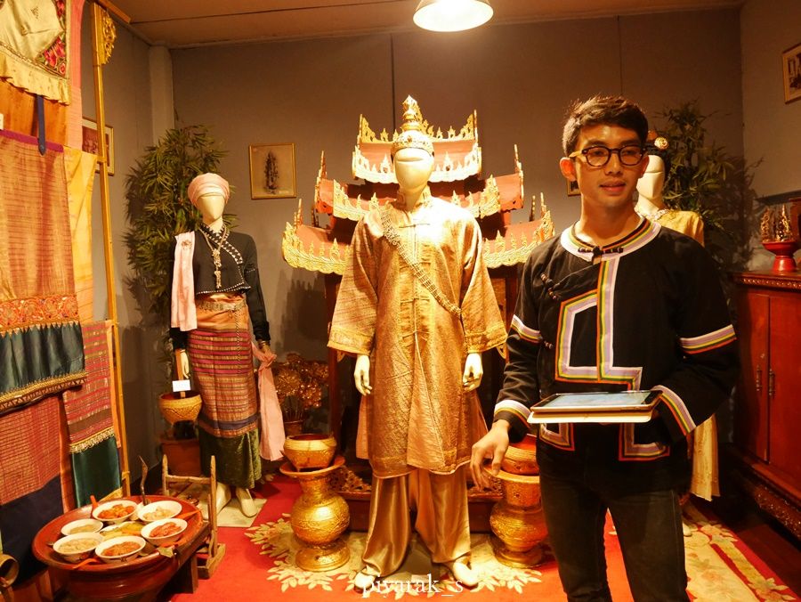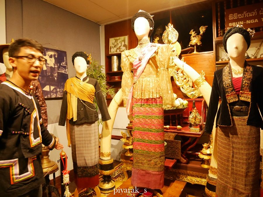 ตอนกลับลงไปชั้นสอง เพราะยังติดใจกับเสื้อผ้าของทางพม่ากับไทเขินกัน แต่จำไม่ได้ว่า ใครทวงเรื่องเสื้อเดินได้ แต่หนุ่ม ๆ ผู้นำชมของเราไม่ยอมเล่า แต่โบ้ยให้คุณพ่อ คือ คุณป้อมเป็นคนเล่าให้ฟังแทน