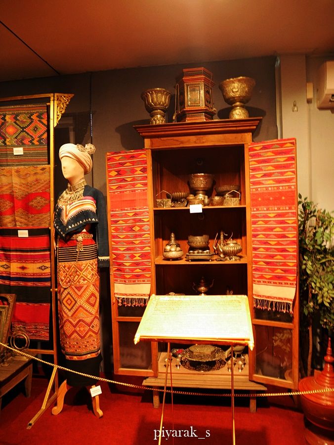 1) ส่วนแสดงฉลองพระองค์จำลองของสมเด็จพระนางเจ้าพระบรมราชินีนาถ เมื่อครั้งเสด็จพระราชดำเนินเยือนภาคเหนือ ไม่ใช่ฉลองพระองค์จริง ๆ (ของจริงต้องไปดูที่กรุงเทพฯ) เป็นการจำลองแบบมาตัดเพื่อให้เห็นแพทเทิร์น ผ้าพื้นเมืองหรือของท้องถิ่นที่ทรงเลือกมาใช้ ไม่ว่าจะเป็นผ้าชาวเขา ผ้ายกดอกของลำพูน ผ้าอาจจะไม่ได้เหมือนเป๊ะ แต่ใกล้เคียงมากถึงมากที่สุด และการตัดออกมาใส่บนหุ่นทำให้เห็นรายละเอียดดีกว่าแค่ดูในรูปถ่ายด้วย