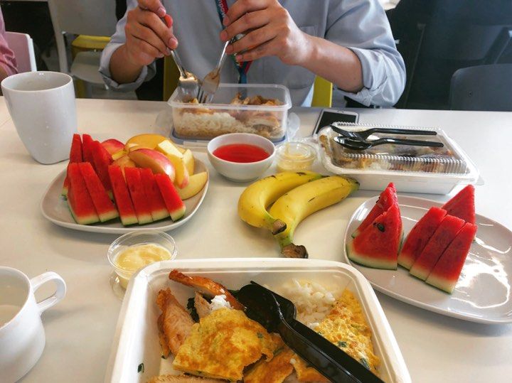 เมื่อถึงเวลาพักเที่ยง ทุกคนก็ทยอยลุกออกจากโต๊ะทำงานตรงดิ่งไปยังห้องอาหาร ฉันก็เป็นหนึ่งในนั้น ยิ่งคิดถึงรสชาติไก่กรอบซอสมะนาวที่กำลังจะได้ลิ้มรสก็ยิ่งตื่นเต้น ฉันหยิบกล่องข้าวที่เขียนชื่อตัวเองไว้ก่อนจะไปนั่งที่โต๊ะประจำติดกับกระจกบานโปร่ง มองออกไปข้างนอกก็เห็นวิวตึกสูงหลายตึกของมหานครลดหลั่นกันไปราวกับกำลังนั่งดินเนอร์หรูอยู่บนตึกระฟ้า