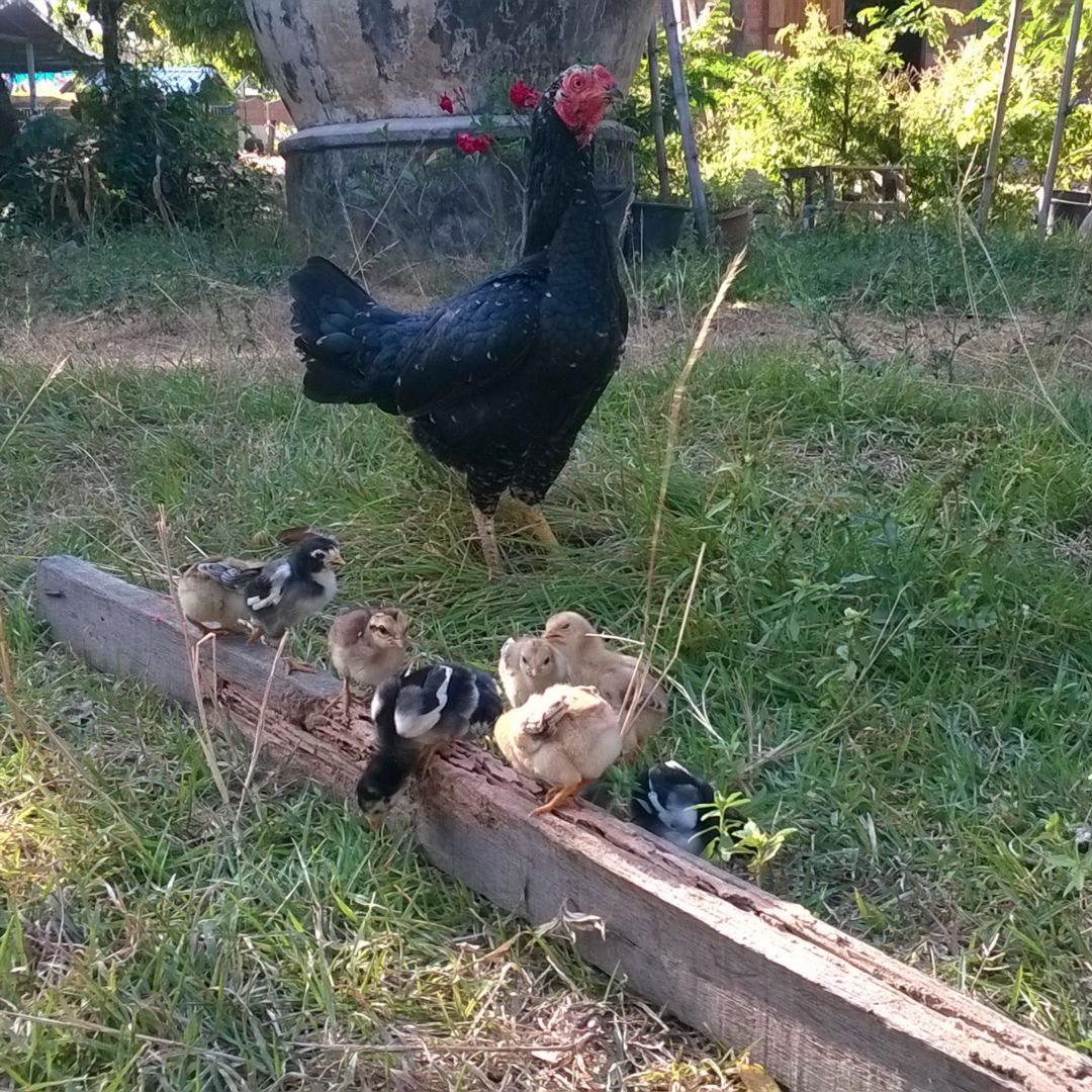ภาพนี้ถ่ายตอนที่เรากับแม่ช่วยกันรื้อกองฟืนเพื่อฉีดยากันปลวก แม่เห็นว่าปลวกเยอะมากเลยให้เราเอาท่อนฟืนไปวางไว้ให้ไก่จิกกิน มันจิกใหญ่เลย ข้อสังเกตอย่างหนึ่งคือ แม่ไก่ไม่ได้กินปลวกด้วย คงยืนดูอยู่ห่าง ๆ อย่างห่วง ๆ คอยระแวดระวังภัยที่จะเกิดกับลูกน้อยของตัว