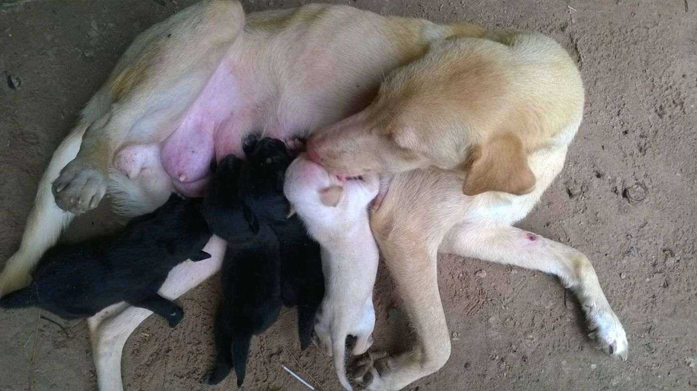 อย่างแม่หมาตัวนี้ชื่อกาแฟ แต่เราเรียกว่า "ข้าวแฝ่" ข้าวแฝ่อยู่บ้านปู่เรา (น้องย่า) เวลาเรากล้บบ้านมันมักจะไปหาพ่อ คอยด้อม ๆ มอง ๆ เพราะมันรู้ว่าถ้าไปหาพ่อมันจะได้กินข้าวจนอิ่มทุกครั้ง ข้าวแฝ่ออกลูกเมื่อกลางปีที่แล้ว ลูก ๆ กินนมเก่งจนข้าวแฝ่ผอมไปเลย ป่านนี้ลูก ๆ ของข้าวแฝ่คงโตกันหมดแล้ว