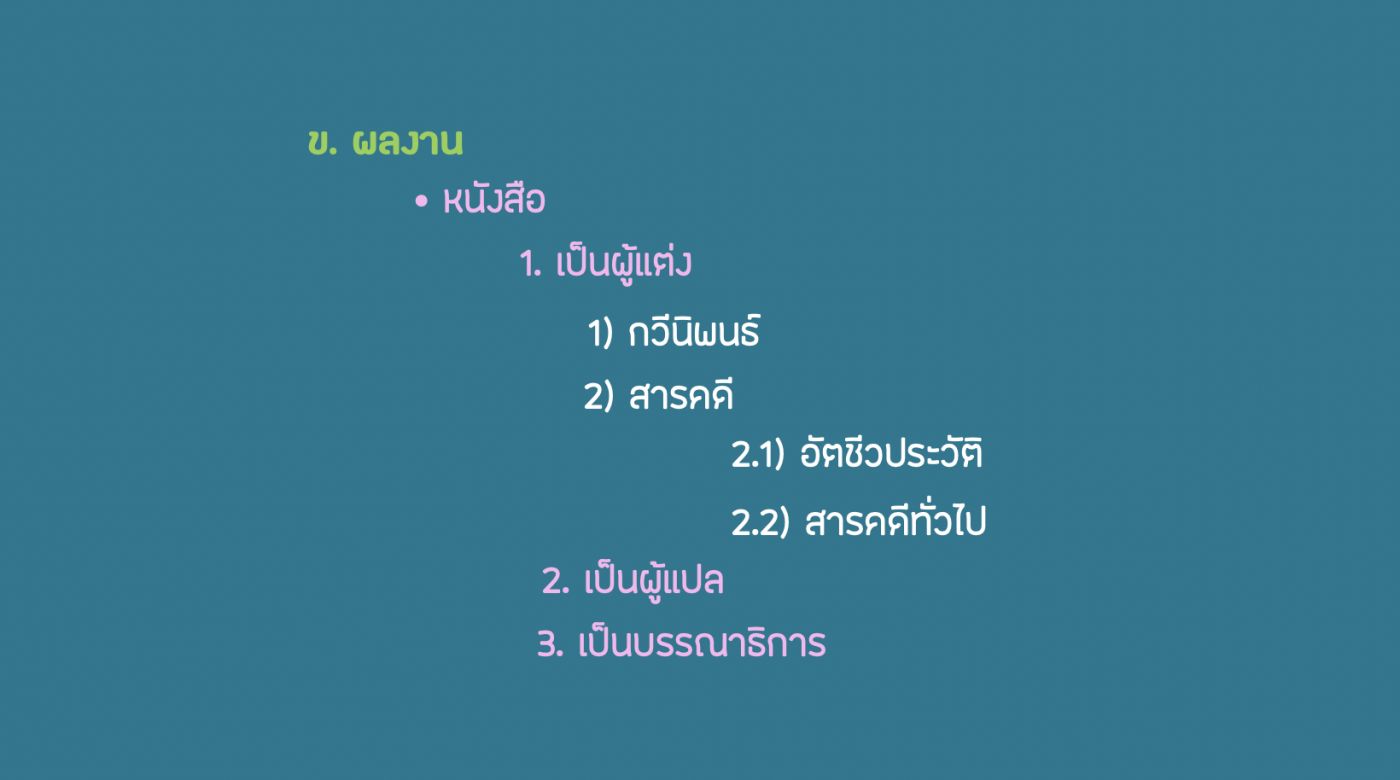 ** ผู้เข้าชมสามารถส่งข้อเสนอแนะหรือข้อมูลเกี่ยวกับประวัติและผลงานเพื่อร่วมจัดทำคลังข้อมูลบรรณานุกรมนี้ให้สมบูรณ์ยิ่งขึ้นได้ทางอีเมล [email protected] **
