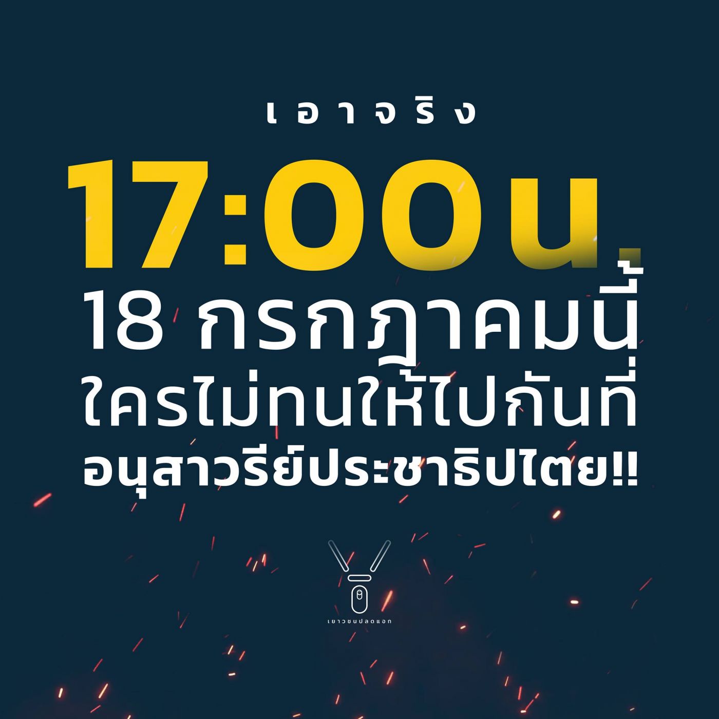 เวลานี้เราไม่ทนอีกแล้ว! 17:00น. เป็นต้นไป 18 กรกฎาคมนี้! มุ่งตรงไปยังอนุสาวรีย์ประชาธิปไตย ลุกขึ้นสู้กับต้นตอของปัญหา ถอนโคนเผด็จการที่ฝังรากลึกมายาวนาน