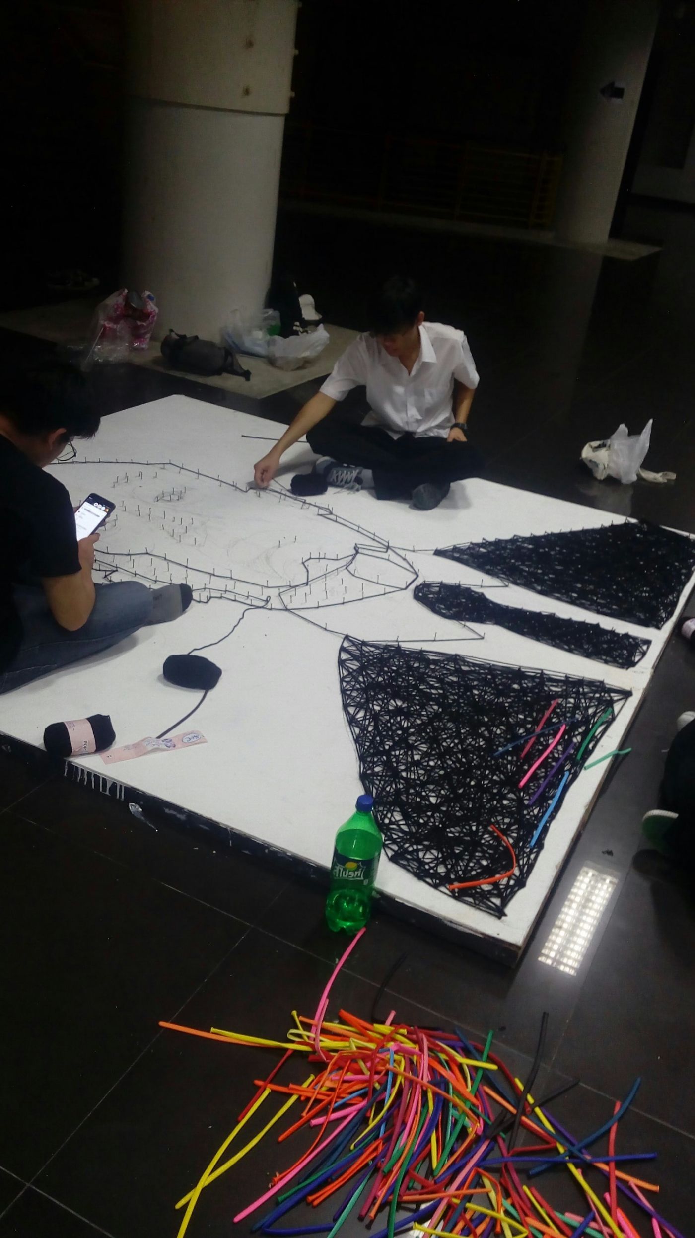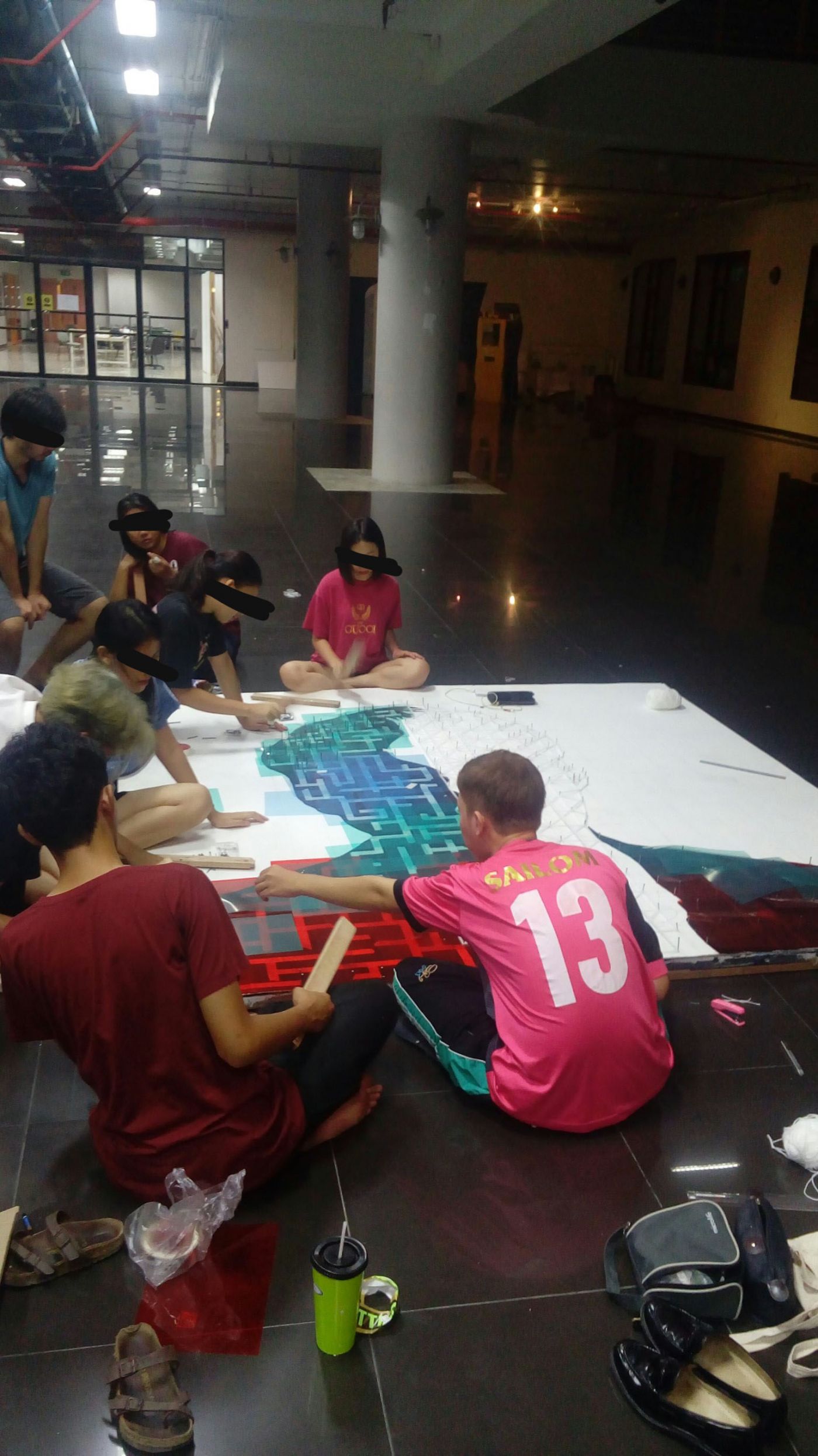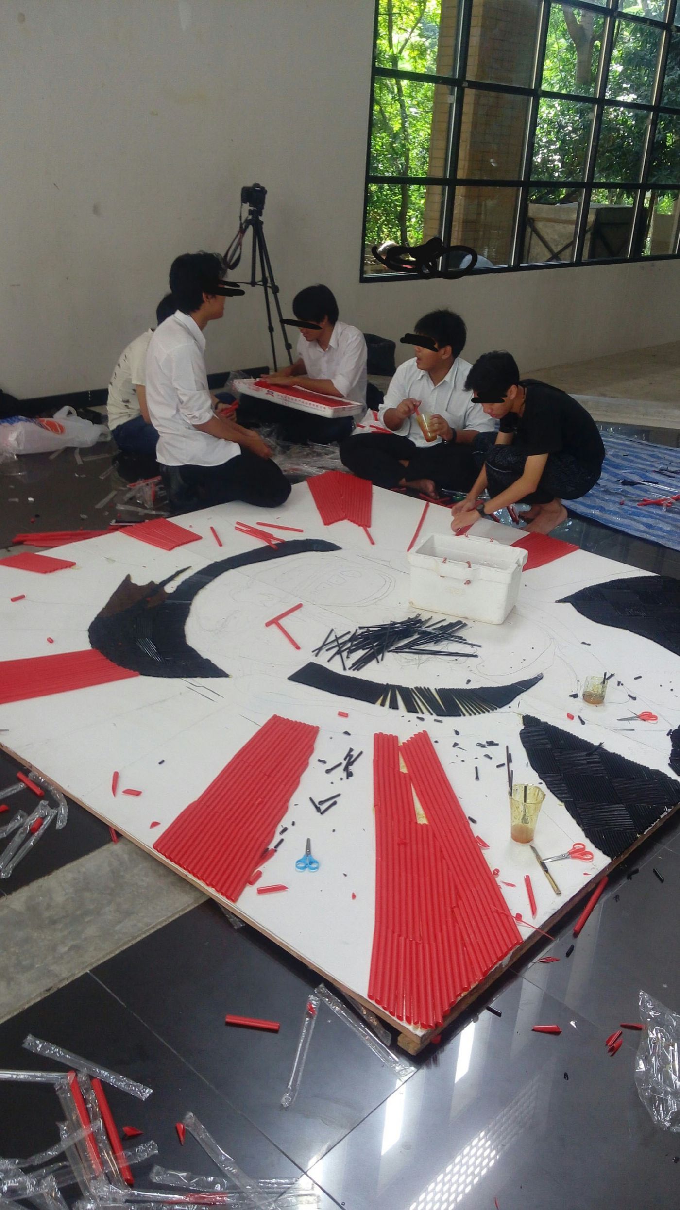คือไม่แน่ใจนะว่าเราจำได้แม่นขนาดนั้นมั้ย แต่งานนี้ใช้เวลาราวๆ3อาทิตย์ได้ รวมตั้งแต่เริ่มทาสีไม้ที่เอามาเป็นพื้นติดวัสดุ หาของ ปะติด กลางวันเรียน เย็นกลับหอ อาบน้ำ เปลี่ยนเสื้อ หาข้าวกิน แล้วก็ค่อยทำต่อ บางคนก็ข้ามขั้นตอนอาบน้ำไปเลย 555555 เพราะขยัน? เปล่าจ่ะ ขี้เกียจกลับหอ อยู่ตั้งแต่เช้ายันเช้าอีกวันเพื่อทำงาน