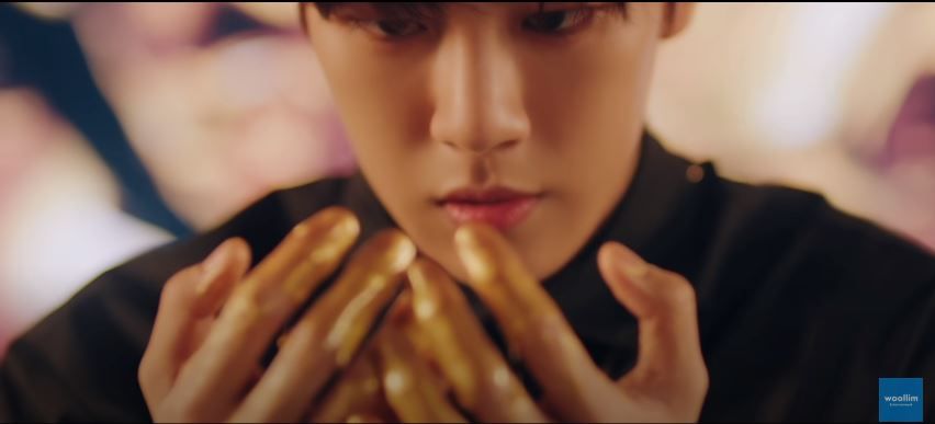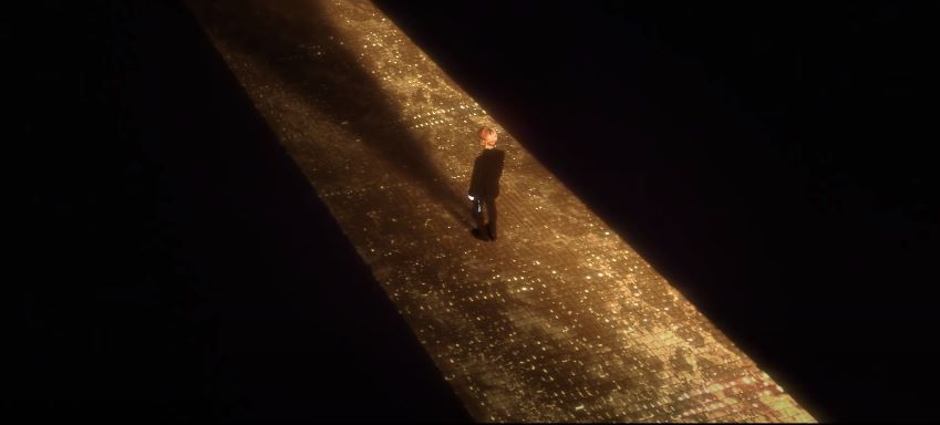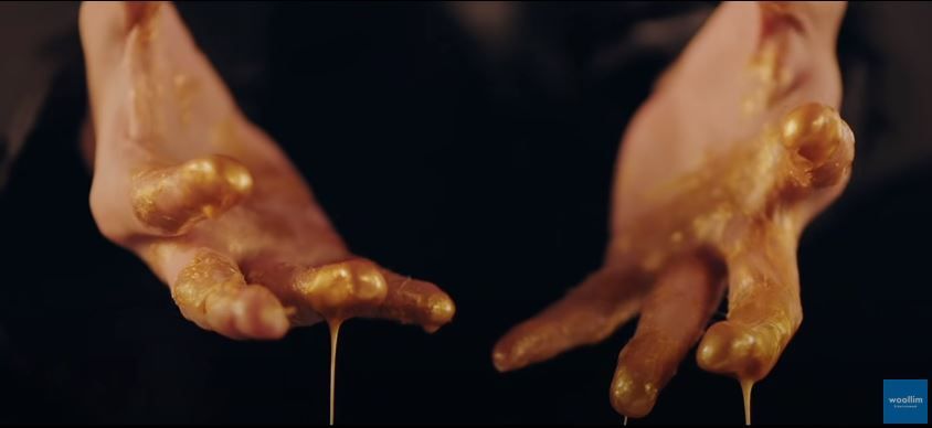 ฉากนี้ก็ยังคงใช้การตัดมุมสะท้อน ของเหลวสีทองในมือของจีบอม มุมมองที่ 1 คือมุมมองของคนที่ยืนดูอยู่ มุมมองที่ 2 คือ มุมมองที่เหมือนเป็นตัวจีบอมเองที่ก้มลงมองมือของตัวเอง