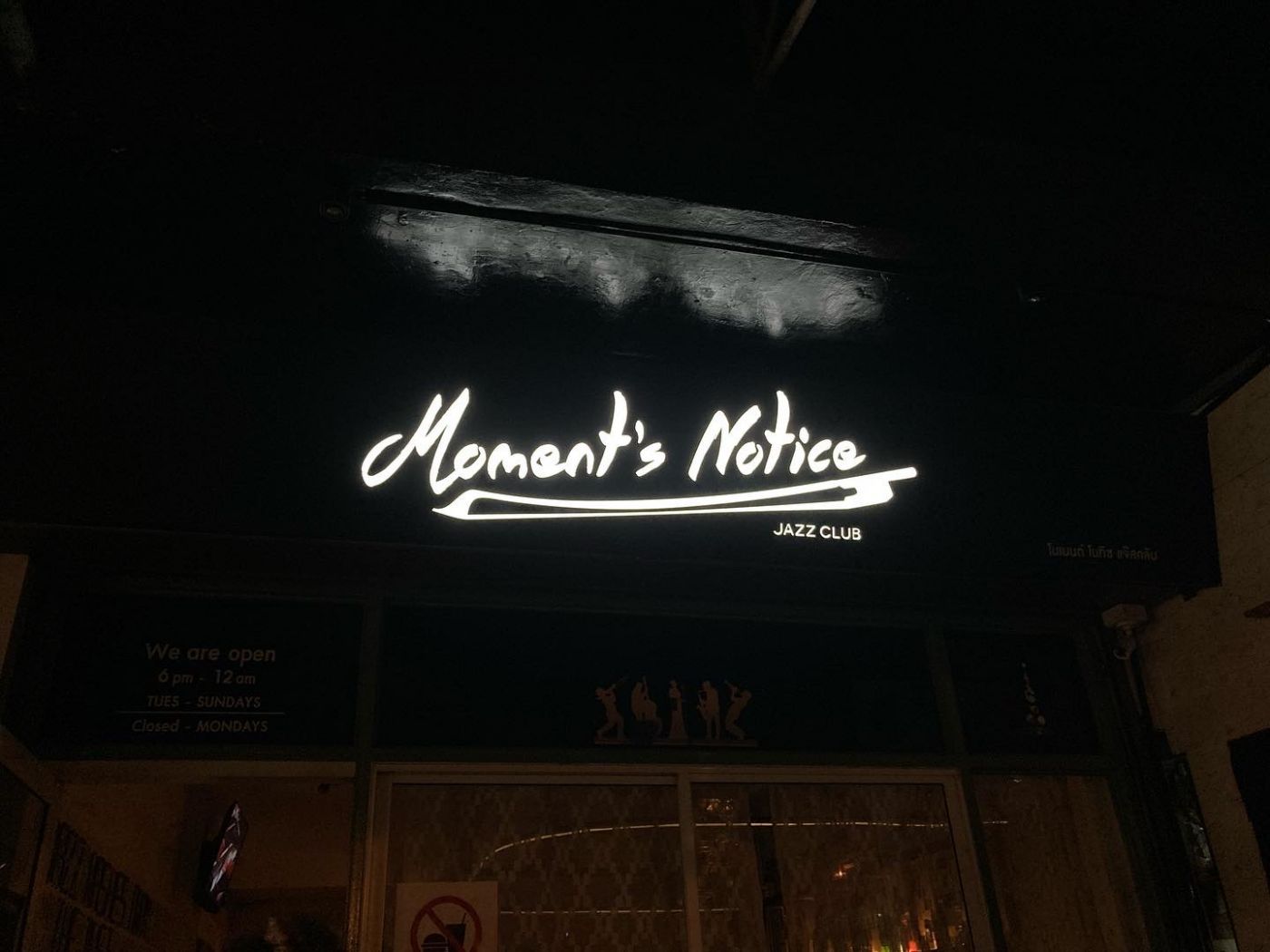 วันแรกเหมือนเป็นน้ำจิ้มเฉย ๆ เพราะเพื่อนพาเราไปที่ Moment's Notice Jazz Club เชื่อว่าคอเพลงแจ๊สหลาย ๆ คนคงเคยไปมาแล้ว โดยเฉพาะคนที่อยู่เชียงใหม่เองก็น่าจะรู้จักดี บรรยากาศร้านก็สบาย ๆ แต่ร้านค่อนข้างเล็กเพราะเป็นตึกบล็อกเดียว ที่นั่งทำเป็นขั้นบันไดขึ้นไปประมาณสามชั้น เพื่อนกับเราเลือกที่นั่งชั้นบนสุด มองลงไปเป็นเปียโนกับพื้นที่ที่มีไว้ให้นักดนตรี