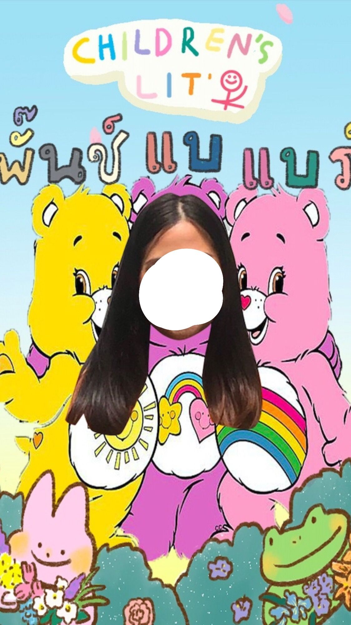 ฉันออกแบบบัตรด้านนึงเป็นธีมยานอวกาศเอเลี่ยนให้เพื่อนตัดต่อรูปกันได้เต็มที่ ส่วนอีกด้านนึงเพื่อนอีกคนเป็นคนวาด น่ารักมาก ๆ แล้วให้ทุกคนไปตัดต่อใส่รูปตามใจชอบเหมือนกัน โดยฉันเลือกเป็นหมีแคร์แบร์เพราะฉันชอบเป็นพิเศษในช่วงนี้ เลยได้มาอย่างภาพด้านล่างนี้