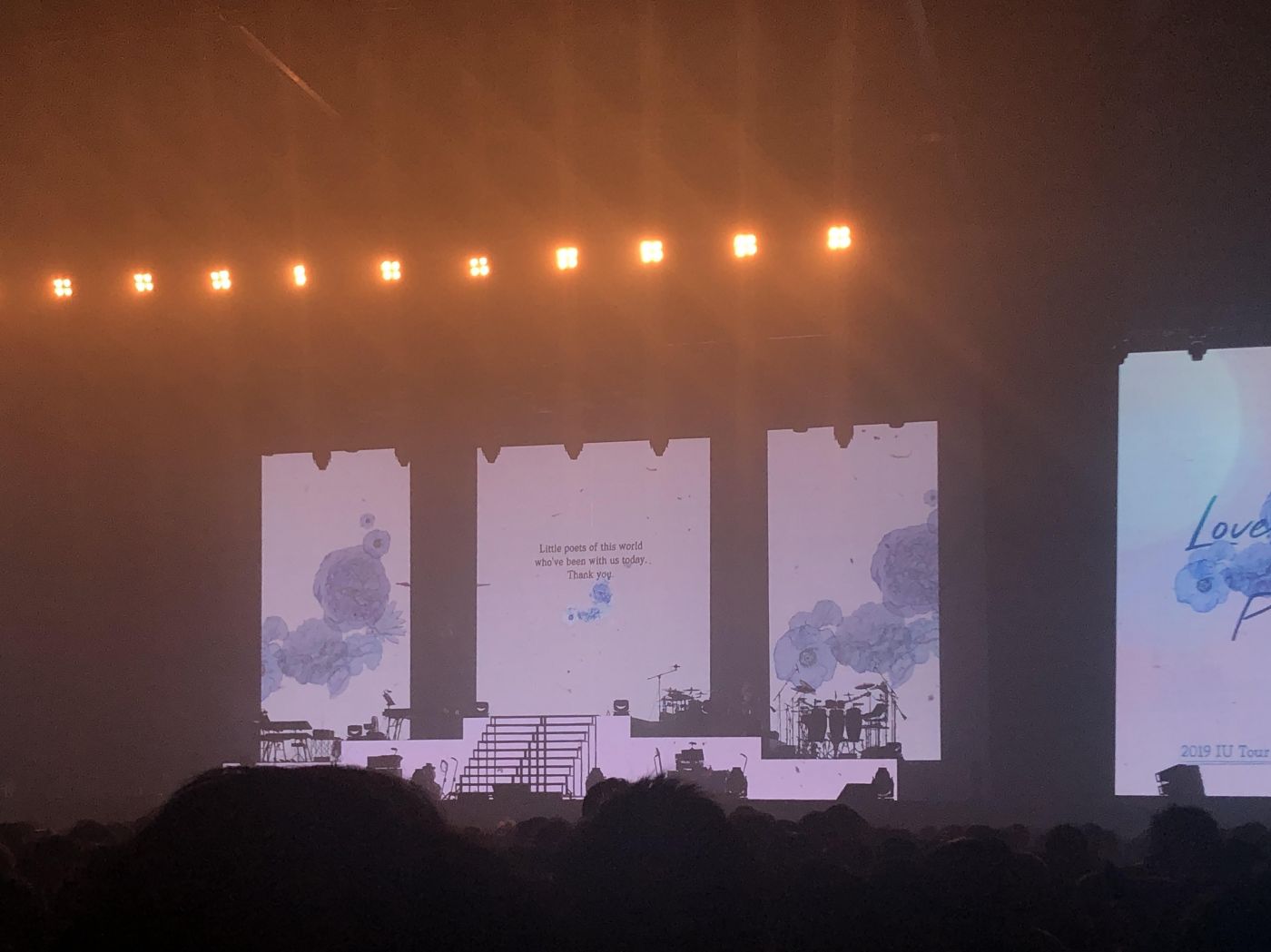 시간의 바깥)” เพลงสุดแฟนตาซีจากอัลบั้มล่าสุด ทั้งดนตรีออเคสตร้า จังหวะที่ชวนติดตาม พร้อมท่าเต้นสวยๆ ทำให้เพลงนี้มีรายละเอียดที่เราชอบมาก อีกทั้งเพลงนี้ยังเหมือนเป็นภาคต่อจาก You&I อีกด้วย ก่อนไอยูจะจบคอนเสิร์ตด้วย You&I (너랑 나) อย่างสวยงาม เราชอบตอนสุดท้ายหลังจากที่ไอยูและทุกๆคนโค้งลา จอแสดงรูปรูปขวดแก้วพร้อมสลากวันเดือนปี "20191224" แปะไว้ เหมือนเป็นขวดแก้วเก็บความทรงจำของคอนเสิร์ตวันนี้ ต่อจากนั้นสกรีนโชว์ข้อความในรูปจดหมายสั้นๆ หรือไดอารี่ถึงไอยู ตัวเอง หรือคนรัก โดยให้เล่าเรื่องราวความรักของตัวเอง ซึ่งเป็นกิจกรรมที่ไอยูได้เปิดให้ยูแอนาจากทั่วโลกส่งเข้าไป และคัดเลือกบางส่วนมาแสดงในคอนเสิร์ตครั้งนี้ ต่อด้วยรายชื่อยูแอนาที่ส่งข้อความเข้าร่วมกิจกรรม ร่วมถึงไอยู 'อี จีอึน' เองด้วย พร้อมข้อความขอบคุณกวีทุกๆท่าน เป็นการจบคอนเสิร์ต "Love, Poem" อย่างสมบูรณ์