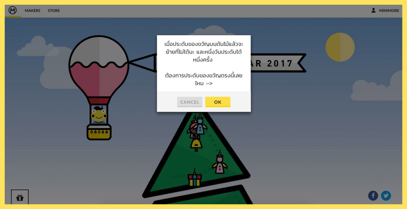 เมื่อคลิกที่ของประดับแต่ละชิ้นก็จะมีหน้าต่างพ็อพอัพขึ้นมา  ให้เพื่อนๆ เลือกได้เขียนความปรารถนาของตนเองลงไปจ้ะ จากนั้นก็กด ประดับเลย เพื่อเอาไอเท็มที่เลือกไปแขวนบนต้นไม้