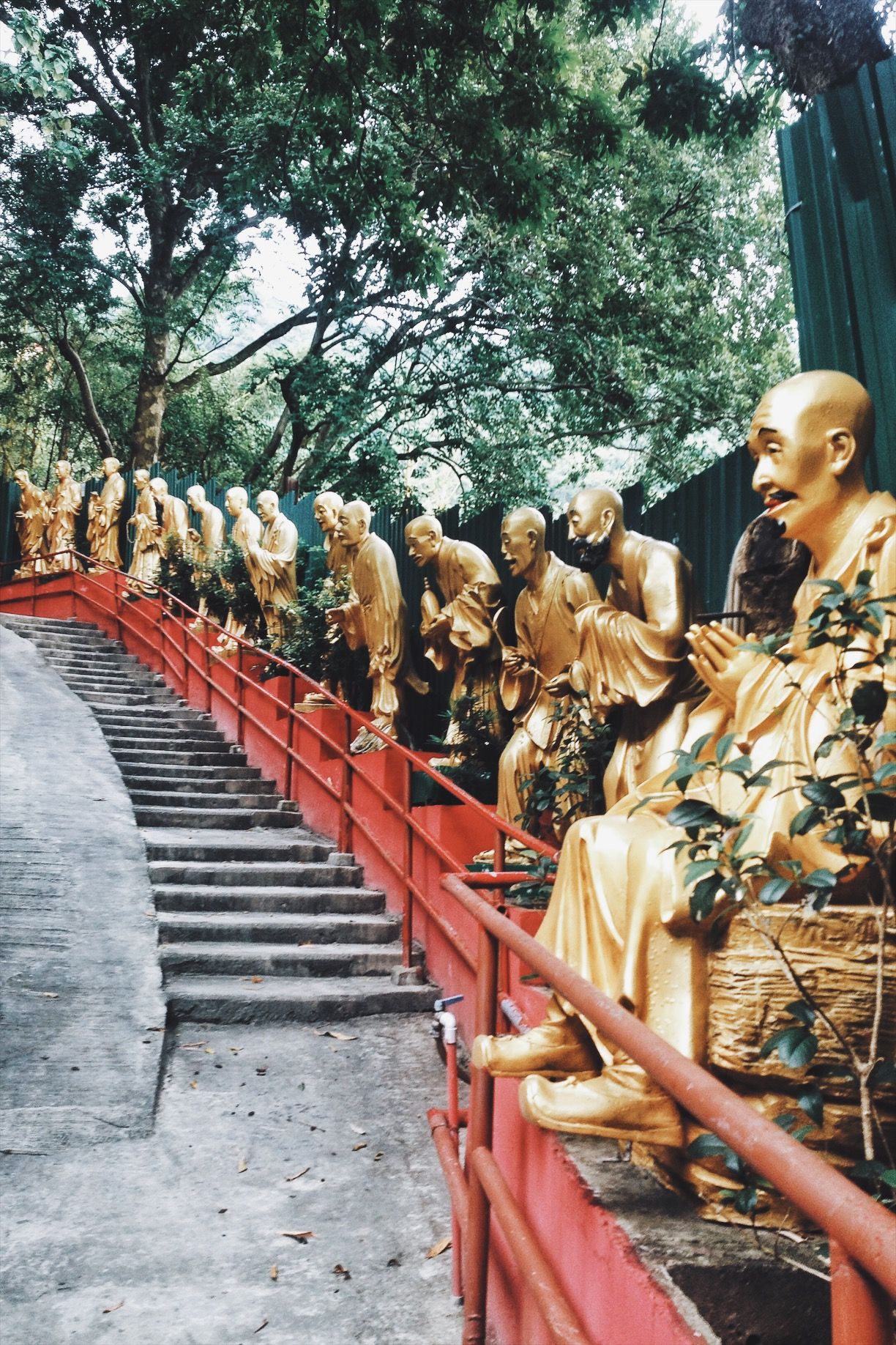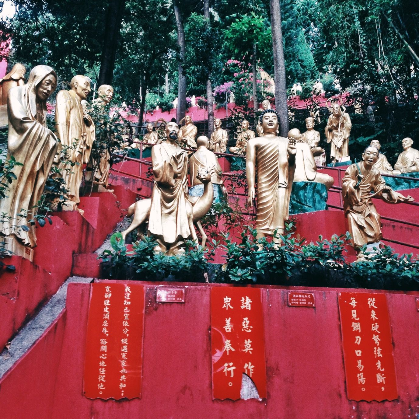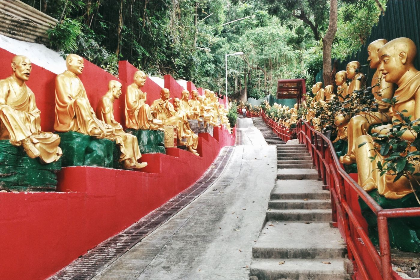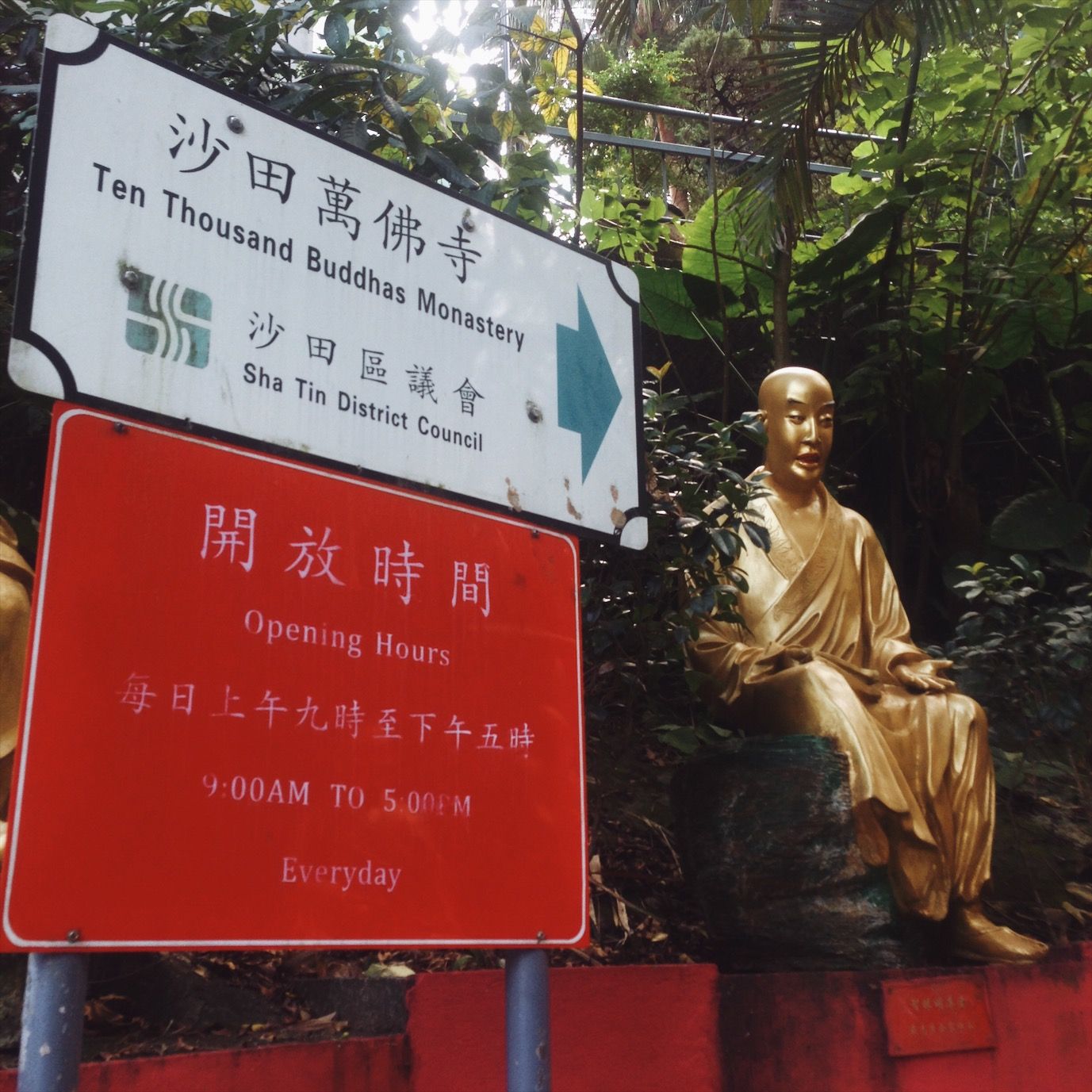 ช่วงนี้จิตใจว้าวุ่น ต้องพาตัวเองไปไปวัดไปวาบ้าง ประเด็นคือไม่อยากไปวัดที่มีคนเยอะ จะไปวัดไทยก็ไม่อยากคุยกับใครเลย เข้าสู่ภาวะน้ำลายบูด อารมณ์อินดี้บังเกิดก็ต้องปลีกวิเวกบ้าง เปิดอากู๋ดูได้ความว่ามีวัดที่ไม่อึกทึกมากถ้าไปช่วงบ่ายแก่ ๆ ไม่มีทัวร์ไทย ทัวร์จีนไปลงแน่นอน แต่ต้องเดินขึ้นไปบนเนินเขาด้วยบันไดสี่ห้าร้อยขั้น เป็นการทดสอบสังขาร พิจารณากายหยาบกันไป ฉันนั่ง MTR ไปลงสถานีซ้าถิ่น (Sha Tin) เพื่อไปวัดหมื่นพุทธ (Ten Thousand Buddhas Monastery) ตามคำแนะนำในกูเกิล ทางค่อนข้างซับซ้อนเล็กน้อย เดินออกมาไกลจากสถานีรถไฟใต้ดินพอสมควร ผ่านหมู่บ้าน ผ่านห้างร้านต่าง ๆ เปิดกูเกิลแม็ปแล้วพบว่าจุดหมายอยู่ไม่ไกล เดินลัดเลี้ยวจนเจอกับป้ายบอกทางเป็นระยะ จนในที่สุดก็มาถึงบันไดทางขึ้นไปสู่ตัววัด บ่ายแก่ ๆ ต้นเดือนพฤศจิกายน อากาศเริ่มเย็น ต้นไม้เขียวชอุ่ม ธรรมชาติร่มรื่น จิตใจก็รื่นรมย์ ลืมความขุ่นมัวกับสิ่งที่เข้ามากระทบใจไปชั่วขณะ