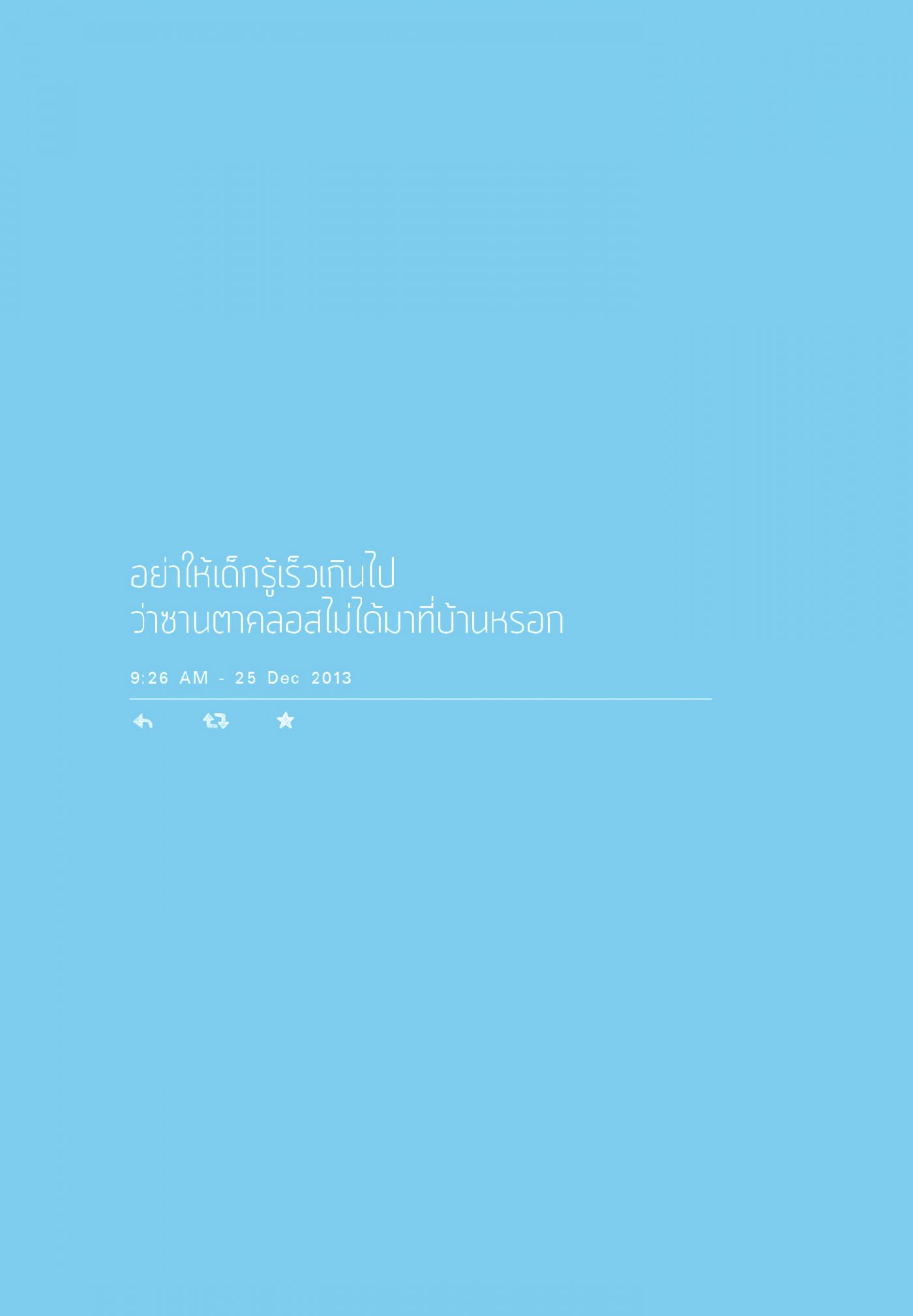 แม้ไม่ใช่เด็กที่ตื่นมาเจอของขวัญในถุงเท้า แต่การได้รู้ว่าซานตาคลอสมีจริงก็เป็นความสุขเล็กๆ ในวัยเด็กของผม อย่างน้อยมันก็เป็นความหวังว่าสักวันของขวัญจะแวะเวียนมาถึงมือเด็กคนนี้บ้าง