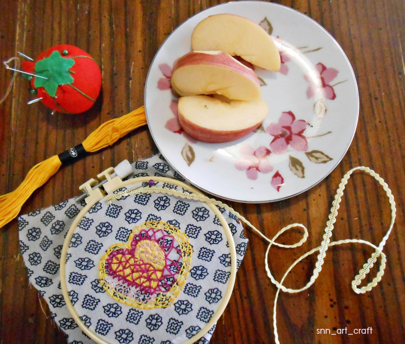 อุปกรณ์และของสังเวยเวลาทำงานค่ะ พยายามสุขภาพดีเหมือนพยายามปักรูปหัวใจให้หวานนี่แหละค่ะ