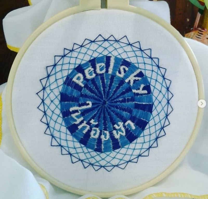 จึงหยิบผ้าผืนนั้นมาปักต่อ ลองเชื่อมกับตัวหนังสือดูว่าจะทำแบบไหนดีให้มันไปด้วยกันได้