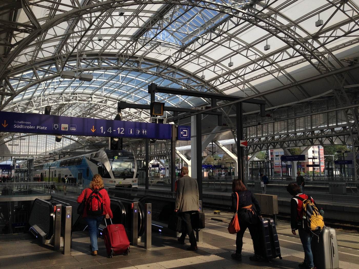ในเมื่อตั๋วที่มีมันขึ้นรอบไหนก็ได้ ผมเลยไม่รีบร้อนอะไร ตอนแรกกะว่าจะเดินเล่นในสถานี ถ่ายรูปนั่นนี่ แต่เพื่อความชัวร์เลยลองไปถามนายสถานีว่า “เอ่อ ไปซาลซ์บูร์กต้องรอรถไฟที่ชานชาลาไหนครับ” ทันใดนั้นนายสถานีก็ชี้ไปยังรถไฟที่จอดอยู่ แล้วตะโกนว่า “Go! Go! Go!”