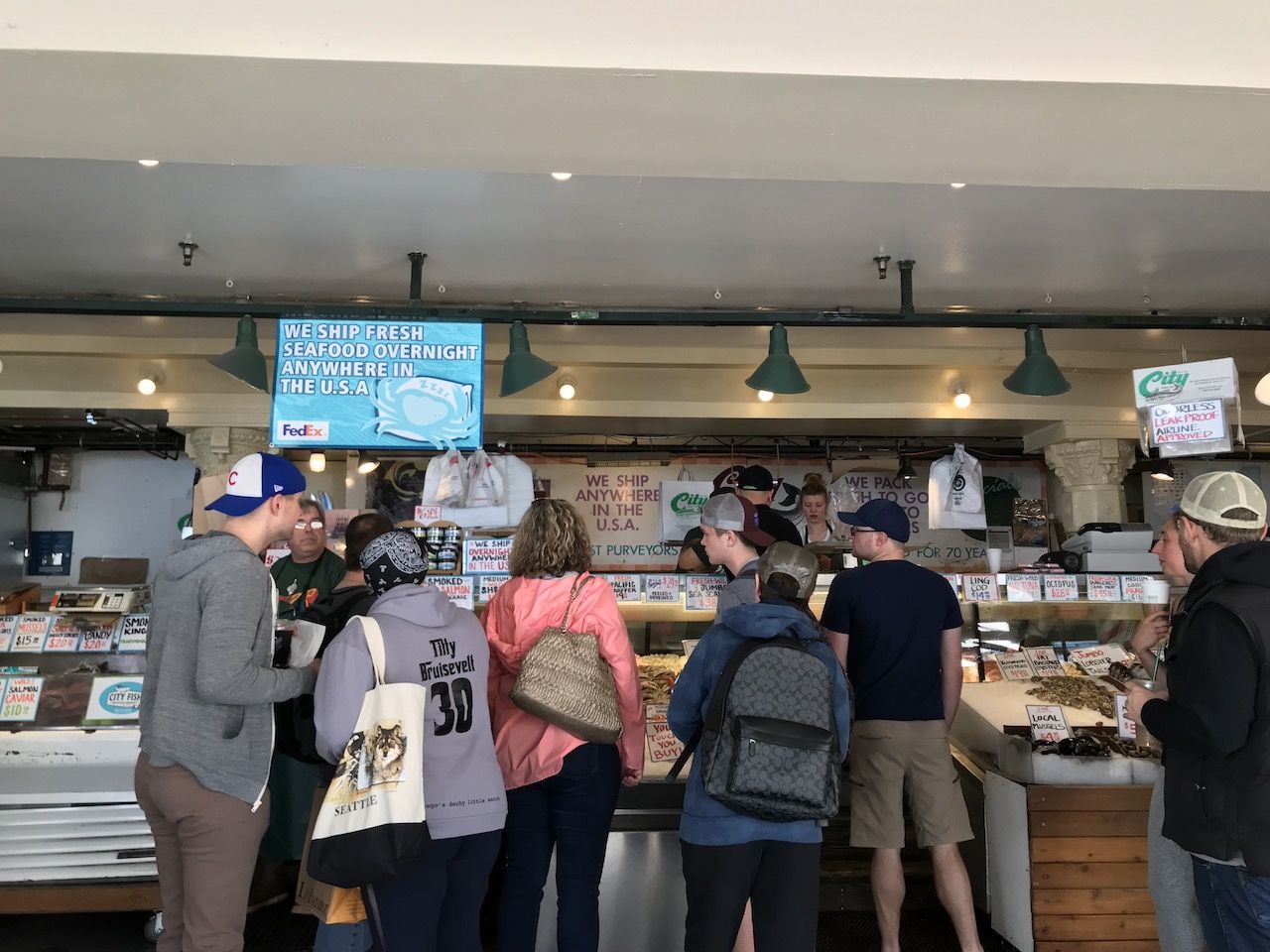 ภาพตัดมาที่ยามสายในวันรุ่งขึ้น สมายพาเราเดินมาหาอาหารเช้ากินกันที่ Pike Place Market ซึ่งเป็นตลาดสดอันโด่งดังของซีแอตเทิล เป็นศูนย์รวมของอร่อยมากมาย อีกทั้งยังมีผักสด ผลไม้ และแซลมอน รวมถึงเนื้อสัตว์ต่างๆให้เลือกสรร ตลอดจนมีจุดชมวิวรับลมทะเลจากมหาสมุทรแปซิฟิกที่งดงามอีกด้วยจ้ะ