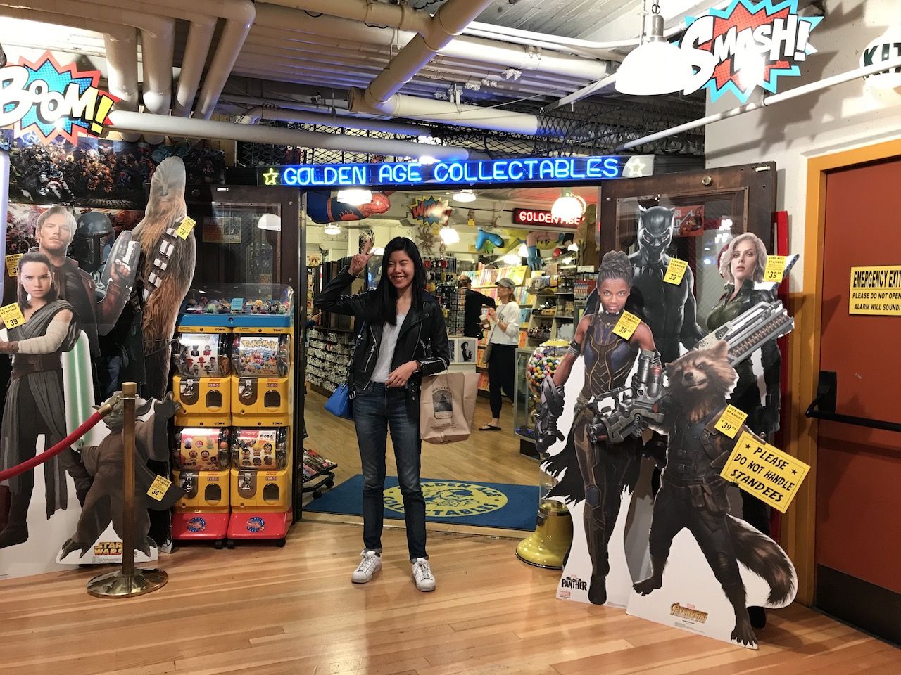 เราเดินเรื่อยๆจนมาถึงร้าน Golden Age Collectables อันเป็นเป้าหมายของเราในเช้าวันนี้ค่ะ ร้านนี้เป็นร้านที่ขายคอมมิคและของเล่นต่างๆเยอะมากจนละลานตาไปหมด รวมถึงมีโปสเตอร์หนังอีกมากมาย โอ้ยยย อยากมีเงินเยอะๆแล้วก็กวาดทุกอย่างกลับบ้าน
