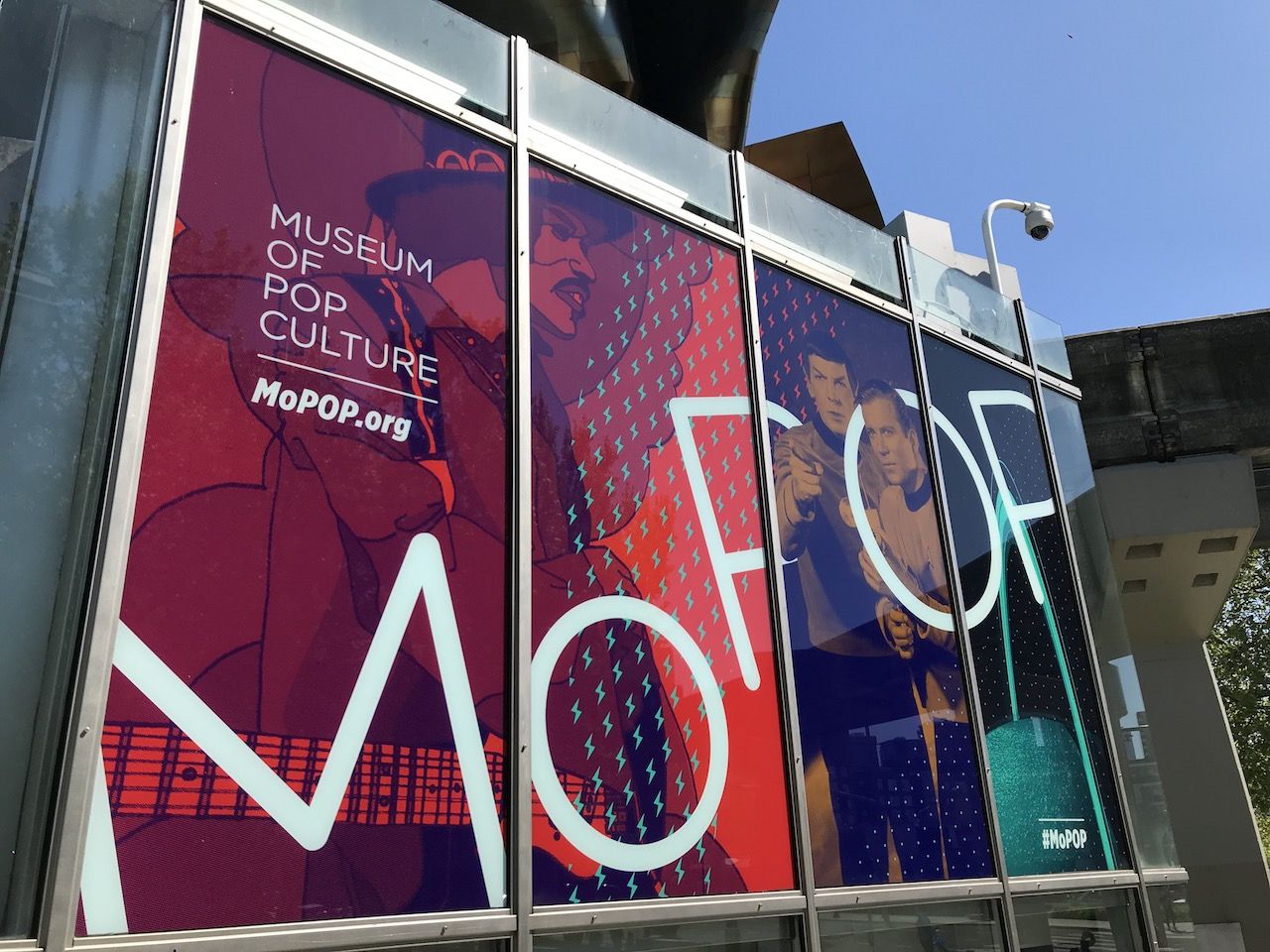 หลังจากที่เราเสียเงินเสียทองพร้อมกับกรี๊ดร้องและเดินวนไปวนมาในรอบอย่างบ้าคลั่งว่าอันนั้นก็น่าซื้อ อันนี้ก็อยากได้ อันนั้นถ้าซื้อเอาไปขายต่อต้องได้ราคาดีมากแน่ๆ จนสมายเริ่มถามแล้วว่ายูโอเคไหม เราจะไปจากที่นี่ได้รึยัง เราก็ตัดใจโบกมือลาร้านนี้และนั่งอูเบอร์ไปที่ MoPop หรือ Museum of Pop Culture หรือ พิพิธภัณฑ์ศิลปะสมัยใหม่ ของดีประจำซีแอตเทิลนั่นเองจ้า