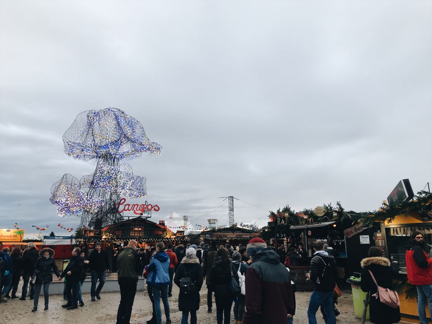 ตลาดคริสต์มาสที่ Theresienwiese นี่้ เป็นลานกว้างๆ โล่งๆ มีซุ้มขายของกินและเครื่องดื่มต่างๆมากมาย มีซุ้มขายของด้วย ซึ่งก็มีหลากหลาย เช่น ของตกแต่งคริสต์มาสต่างๆ ของแฮนเมดทำมือ สบู่ แชมพู เครื่องประดับ เยอะแยะ ถ้ามีซุ้มให้สอยดาวกับแจกโอวัลตินฟรีด้วยก็คิดว่ากำลังเดินอยู่ที่งานกาชาดสวนอัมพรเป็นแน่แท้ (ต้องที่สวนอัมพรด้วย ที่จัดตรงสวนลุมมันไม่คือ ไม่ใช่ ไม่เหมือน)