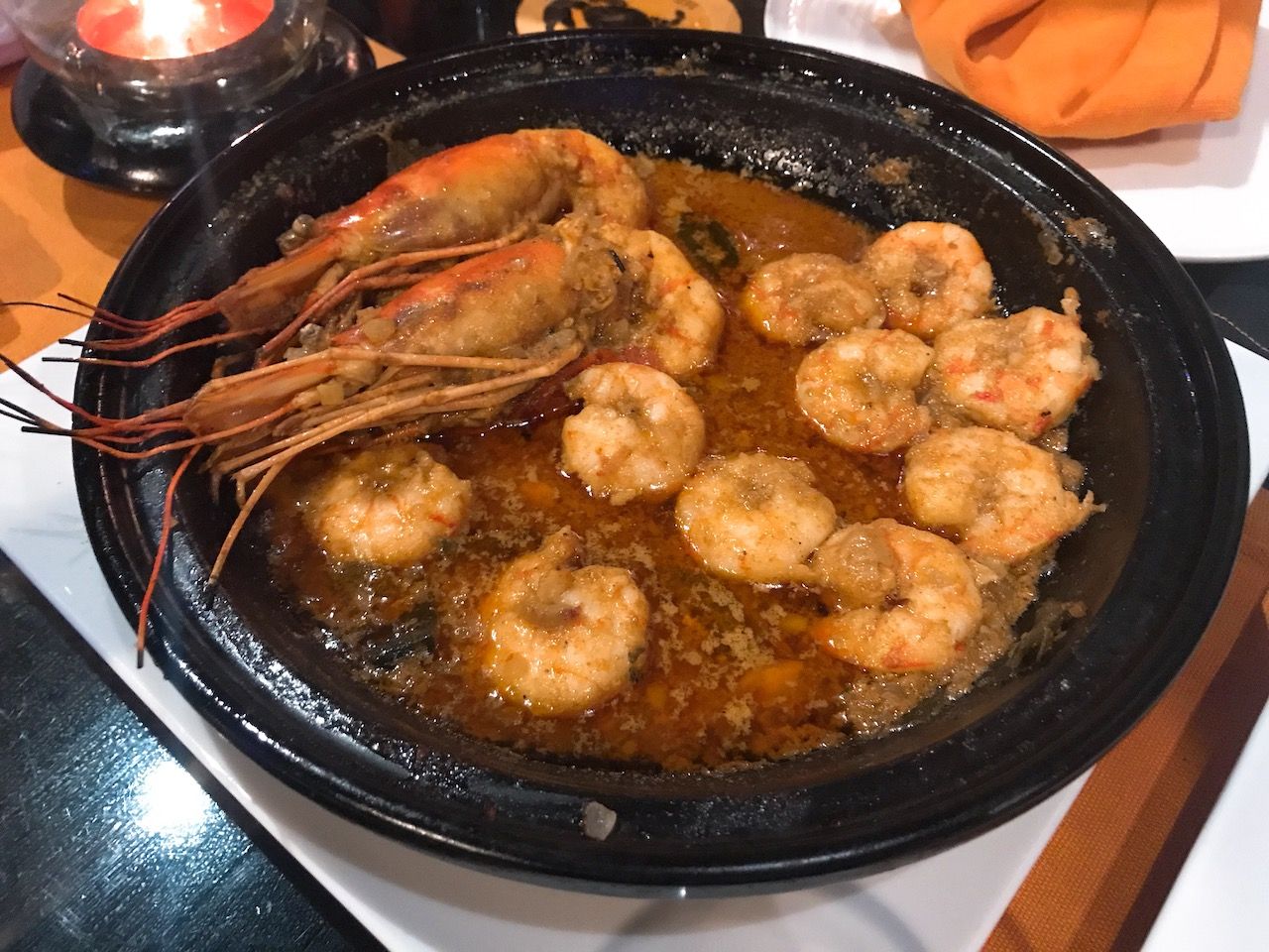และเมนูกุ้งที่เราเลือกมานั้นก็คือ Clay pot Prawn Curry ซี่งเป็นกุ้งสองขนาดที่น้ำหนักรวมกันครึ่งกิโลมาอบกับซอสในหม้อดินเผา จานนี้เนี่ย เขาว่ากันว่าเป็น The best prawn curry in the country เลยนะจ๊ะ