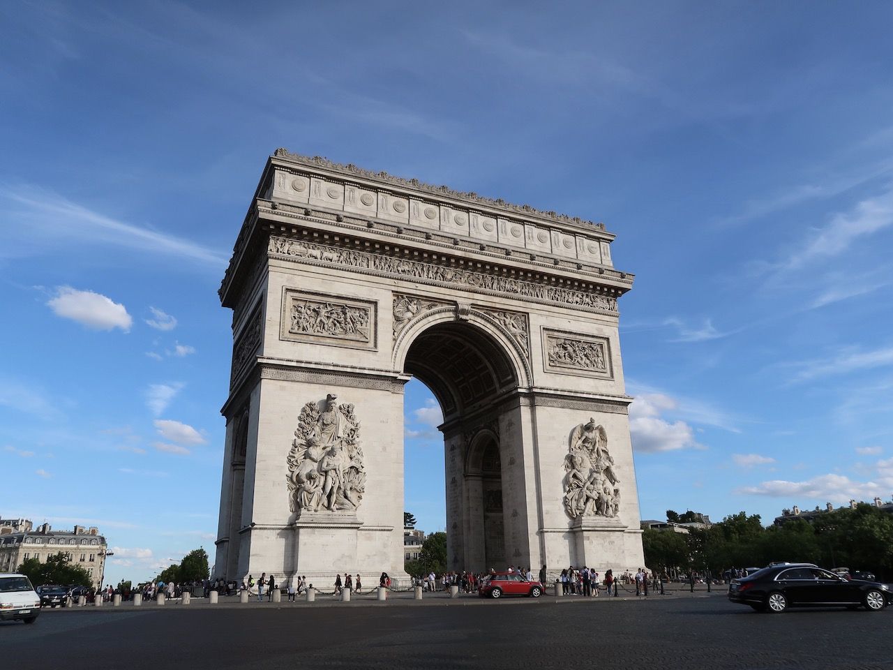 จากนั้นเราก็เดินตรงไปเรื่อยๆบน Avenue des Champs-Élysées จนไปถึง Arc de triomphe de l'Étoile นั่นเอง ระหว่างทางที่เดินไปในหัวก็นึกถึงเพลง Les Champs-Élysées ไปตลอดทางซึ่งเป็นเพลงในความทรงจำเพราะเคยหัดร้องตอนเรียนฝรั่งเศส จุดนั้นที่เราหันหลังมาแล้วเห็นลูฟอยู่ไกลๆ ตรงหน้าคือภาพของ Arc de triomphe de l'Étoile มองไปด้านซ้ายนิดๆก็เห็นหอไอเฟลอยู่ลิบๆแล้วเหมือนเราฝันไปเลย ในที่สุดเราก็ได้มายืนอยู่ตรงสถานที่ที่เราเคยเรียน เคยอ่านแล้วนะ