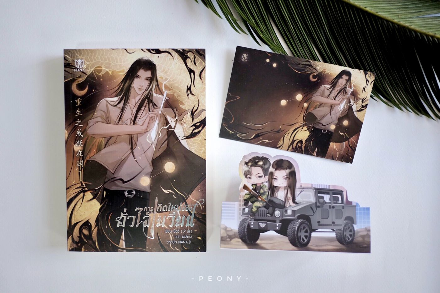 มากันที่หน้าปกเล่มหนึ่ง เป็นรูปของน้องฮั่วถือพู่กันเทพกระดูกมังกร เห็นผมยาวสลวยแบบนี้มันมาจากการฝึกเซียนจนลืมตัดผมค่ะ ~(˘▽˘~) นอกจากที่คั่นและโปสการ์ดประจำเล่มแล้ว ยังมีจิบิลายน้องฮั่ว และสแตนดี้ลายพี่หลงและน้องฮั่วบนรถหุ้มเกราะด้วย น่ารักมากๆเลย  ใครสนใจสามารถทดลองอ่านได้ที่