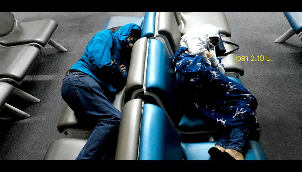 ขณะที่เรานั่งรอเวลา เพื่อนบางคนทนไม่ไหวก็ต้องพ่ายแพ้ให้กับเบาะที่สนามบินไป