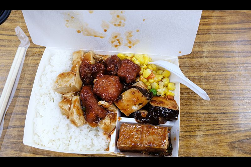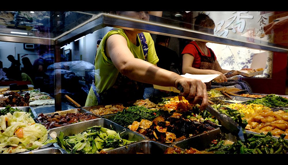 "ให้เลือกผักก่อน 4 อย่าง และเลือกเนื้อสัตว์ได้อีก 1 อย่าง" นี่คือสิ่งที่เราแปลได้ หลังจากยืนทำภาษากายอยู่นาน อาหารมื้อแรกที่ไต้หวัน เราเลือกเข้าร้านที่เป็นเหมือนร้านข้าวราดแกง เพราะดูทรงจากอาหารที่โชว์ตระหง่าหน้าร้านแล้วน่าจะเป็นของคนท้องถิ่น ซึ่งการที่มาเที่ยวไต้หวันทั้งที เราต้องมากินอาหารที่ได้เรียนรู้วิถีชีวิตเขา ไม่ใช่กินตามรีวิวแล้วเจอแต่คนไทย! (ในแววตามีความมุ่งมั่นอยู่ในระดับหนึ่ง) ด้วยอุดมการณ์ดังกล่าว เราเลยดุ่มๆเข้าไปที่ร้านอย่างไม่ต้องคิดอะไรมาก อีกทั้งอาหารที่โชว์อยู่หน้าร้านก็เย้ายวนใจเหลือเกิน แต่เราก็เจออุปสรรคในการเลือกอาหาร นั่นก็คือ ภาษา!!