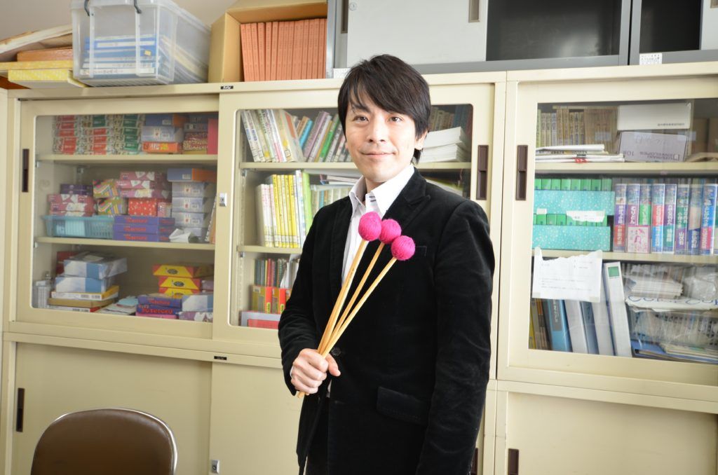 อันที่จริงผมเริ่มมาเล่นมาริมบาเมื่อสี่ปีต่อไป ผมบังเอิญไปเจอคอนเสิร์ตมาริมบาในช่วงฤดูใบไม้ร่วงปีที่สามของการเรียนมหาวิทยาลัย และจนถึงตอนนั้นผมเคยเล่นวงออเคสตราแต่ผมก็คิดว่าตัวเองไม่เหมาะกับการแบบนี้ เมื่อผมกำลังคิด ผมได้ไปฟังคอนเสิร์ตมาริมบา ฟัง 'เสียง' และ 'การมีอยู่' ของเครื่องดนตรี และการแสดงดนตรีที่ปรมาจารย์ในอนาคตของผม และดูเหมือนว่าผมจะถูกฟ้าผ่า