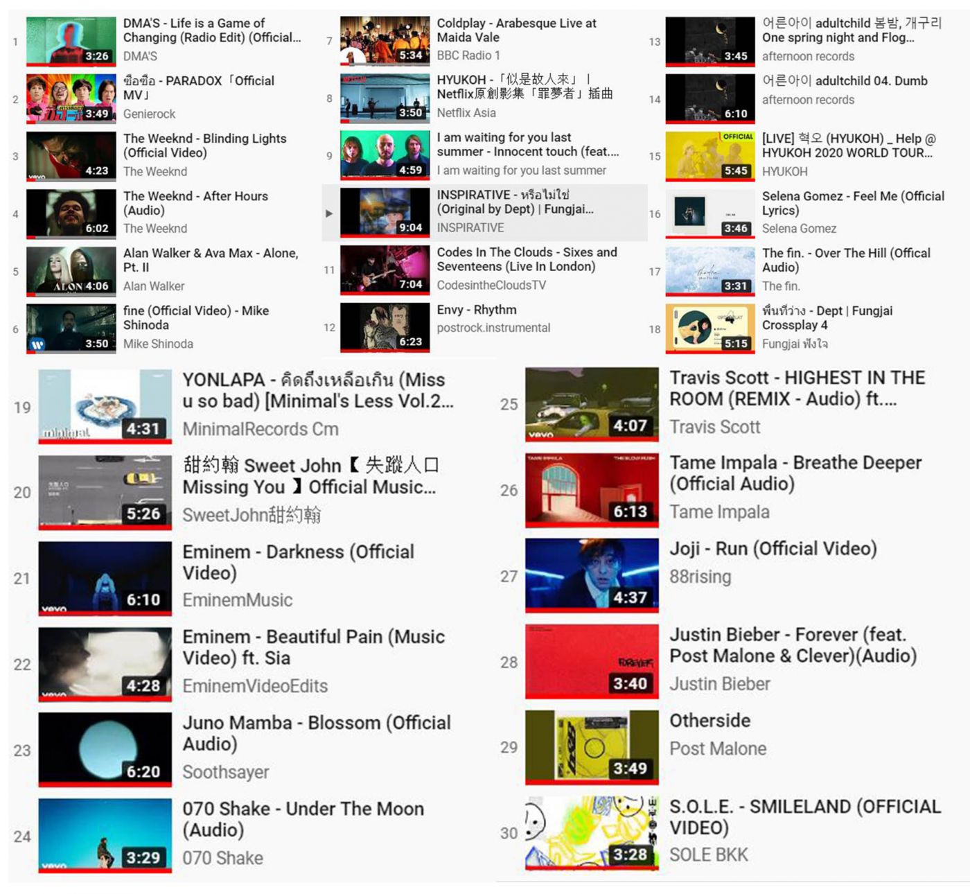 เพลย์ลิสต์อาจจะแปะไม่ครบทุกเพลง เพราะเยอะมาก จากลิสต์รวมในภาพนี้