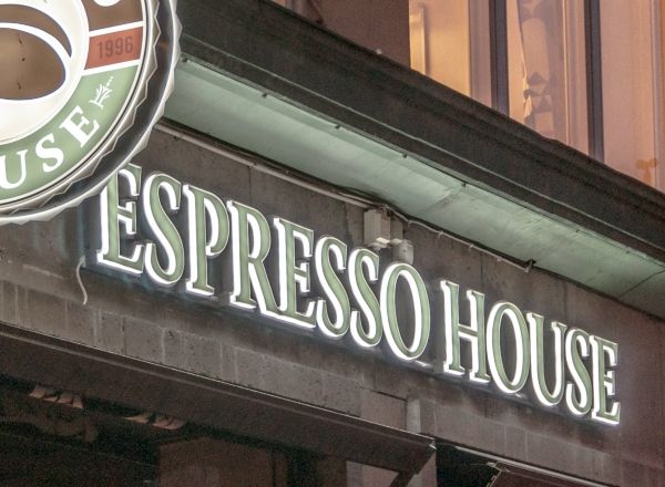ESPRESSO HOUSE มักทำเป็นร้านขนาดใหญ่พอๆ กับสตาร์บัคส์บ้านเรา หรือบางร้านอาจใหญ่กว่า มีที่นั่งเยอะมาก มีขนมและอาหารให้เลือกเยอะมากกว่าสตาร์บัคส์ และเป็นทั้งของคาวและของหวาน ใครไม่มีที่ไปก็สามารถมาทำงานเอาเน็ตฟรี (จากการซื้อกาแฟ) นั่งแช่เป็นวันๆ หรือจะนัดใครมาเจอที่นี่ก็ได้ ง่ายดี ส่วนเครื่องดื่มก็มีให้เลือกเยอะมาก ของโปรดเราคือโกโก้ร้อนที่ไว้สั่งเวลาอากาศข้างนอกหนาวๆ แต่ความพีคคือมีครั้งนึงสั่งมอคค่าเย็น ไม่รู้ผีอะไรเข้าถึงสั่งเย็น แต่พอได้เครื่องดื่มมาแล้วปรากฏว่าไม่มีที่นั่ง เลยต้องออกไปเดินเล่นรอบๆ Old town กับเพื่อนในอุณหภูมิประมาณ 2 องศา... สุดท้ายก็สั่นงกๆ จนต้องเดินเข้านิทรรศการแอนน์ แฟรนค์แถวนั้นเพื่อหาความอุ่น 5555