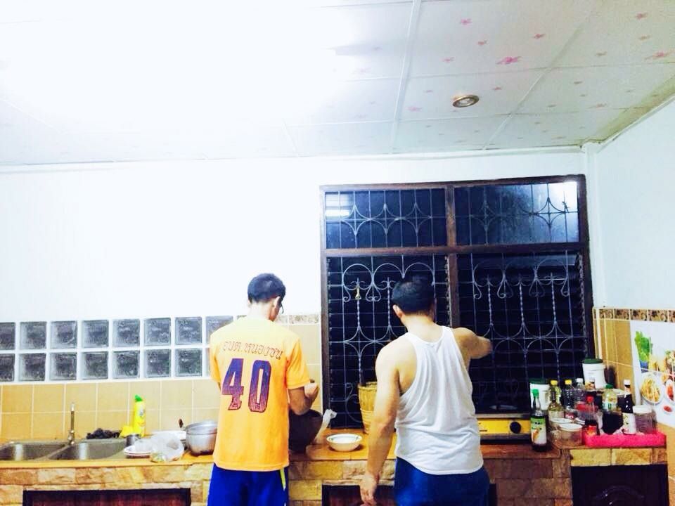 พ่อกับพี่ชายช่วยกันทำกับข้าว ฉันชอบเวลาทานข้าวเย็นมากที่สุด แม้เพียงไม่กี่นาทีที่เราจะพร้อมหน้าพร้อมตาในหนึ่งวัน
