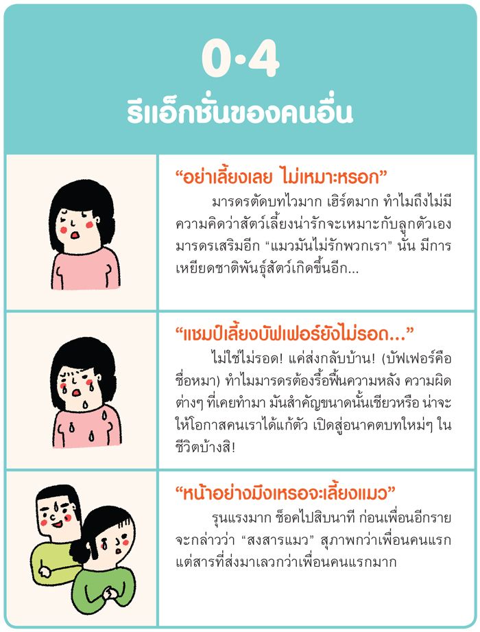 การกลับไปเลี้ยงสัตว์อีกครั้ง ก็คือตอนเลี้ยงหมาก็ปวดหัวกับการพามันไปถ่ายในสวน ไม่ให้ถ่ายในบ้าน ต้องให้กินอาหารเม็ดผสมอาหารเปียก เพื่อสุขภาพที่ดี ต้องพาไปเดินเล่นไม่งั้นเหงา ต้องดูแลมันทุกวัน ห้ามหายไปเป็นสัปดาห์เดี๋ยวจิตตก แล้วหมาที่เลี้ยงตอนนั้นคือมันติดเรามาก เรียกว่าอยู่ตรงไหน มันก็จะมาเรียกร้องความรักความเอ็นดูตลอดเวลาจนเหมือนแฟนที่โทร.หาตลอดทุกสิบนาที เธออยู่ไหนอะๆ ตลอด คือรักนะ แต่ก็อยากเป็นส่วนตัวบ้างไง ก็เลยคิดว่า เฮ้ย แมวมันต้องเอาแต่ใจกว่าหมาแน่ๆ เลี้ยงยากชัวร์