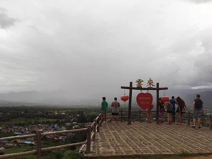 โดยปกติแล้วนักท่องเที่ยวมักขึ้นไปที่จุดชมวิวประมาณ 06.00 น. เพื่อรอชมพระอาทิตย์ขึ้น แต่เอ็นกับฮงบิน กะเวลาผิดไปหน่อย เล่นไปกันตั้งแต่ตีสี่! เลยมีเวลาจิบชาร้อนและแต่งกลอนรอพระอาทิตย์ขึ้น แน่นอนว่าทั้งสองไม่ลืมถ่ายรูปเก็บไว้เป็นที่ระลึกด้วยถือว่าเป็นการจบทริปพักผ่อนที่ปายได้อย่างสมบูรณ์แบบ