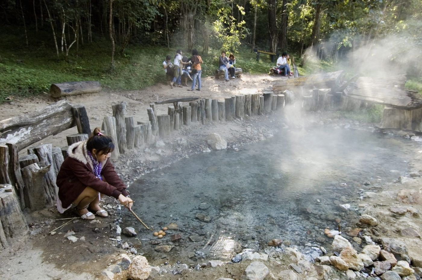 โป่งน้ำร้อนธรรมชาตินี้เป็นส่วนหนึ่งของอุทยานแห่งชาติห้วยน้ำดัง มีน้ำร้อนไหลผ่านเป็นบริเวณกว้าง บางช่วงเป็นแอ่งพอให้แช่เท้าได้ บางช่วงเป็นบ่อกลางแจ้งสามารถลงแช่น้ำได้ทั้งตัว เป็นการผ่อนคลายความเมื่อยล้าจากการทำงานได้ดีทีเดียว นอกจากนั้น จะเป็นบริเวณน้ำผุดมีอุณหภูมิสูงถึง 80-100 องศา! สามารถต้มไข่ให้สุกได้เลย ซึ่งทั้งสองคนก็ซื้อไข่มาต้มกันที่น้ำผุดนี้ด้วย