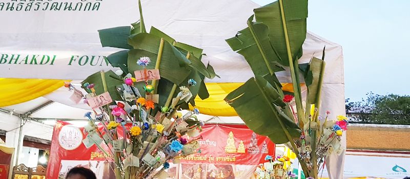 แถวนั้นก็มีต้นกล้วยและมีแบงค์เสียบๆ...คือตอนอยู่ในโบสถ์ก็มีเสียงพระประกาศทำบุญกับต้นกล้วย เวลาทำไรจะได้กล้วยๆ