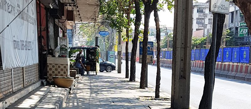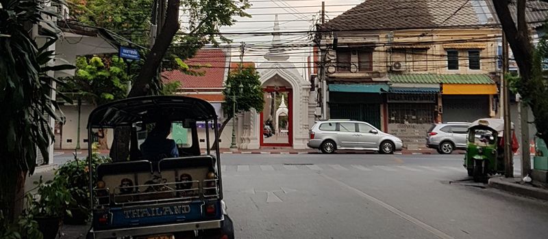 เดินออกประตูด้านหลังก็จะเดินไปวัดสุทัศน์ต่อ...ตอนแรกจะเดินย้อนไปสี่แยกที่เจอเสาชิงช้าไกลๆ เมื่อกี้แต่พอเดินออกจากวัดมาถนนใหญ่และมีซอยตรงข้าม...เราก็เห็นเหมือนประตูวัดไกลๆ...ก็ไม่แน่ใจอาจเป็นวัดสุทัศน์...ก็เลยเดินลองไปดู...เข้าซอยไปแล้วทะลุถนนอีกด้าน