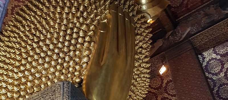 คนที่อยู่แถวนั้นก็มีถ่ายภาพฝ่าเท้าของพระนอนที่มีลวดลายสวยงามอยู่จากด้านนอก