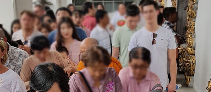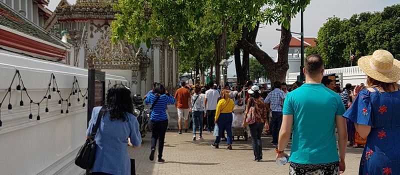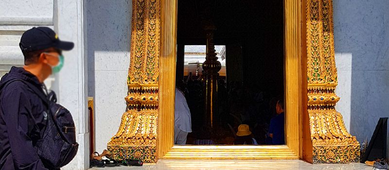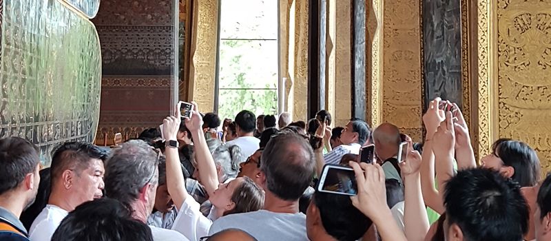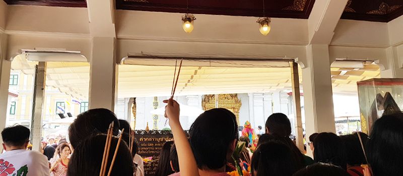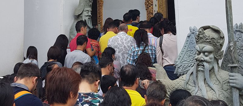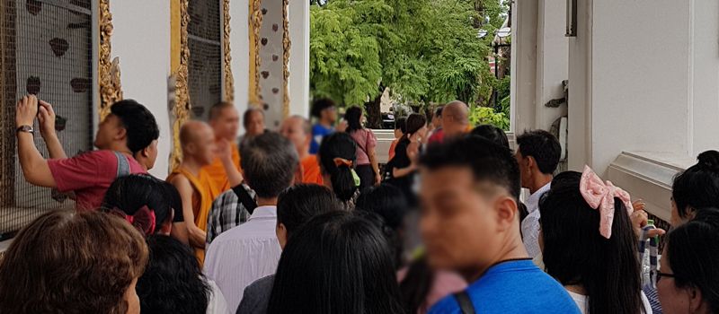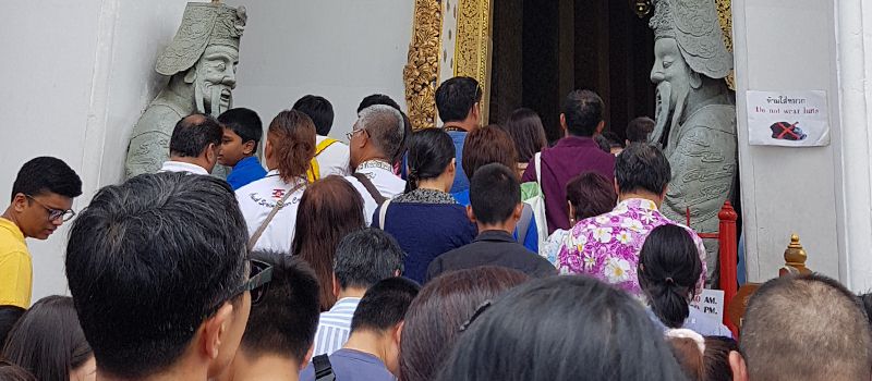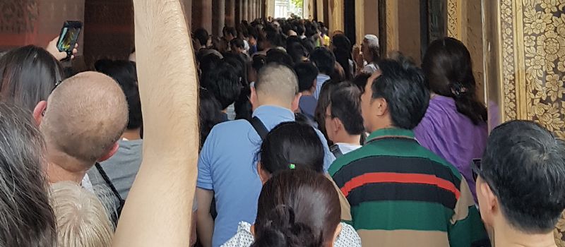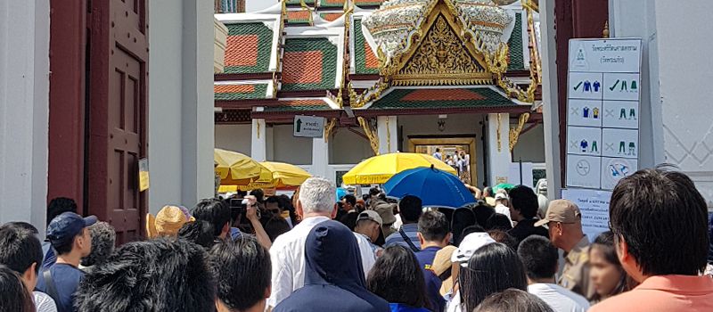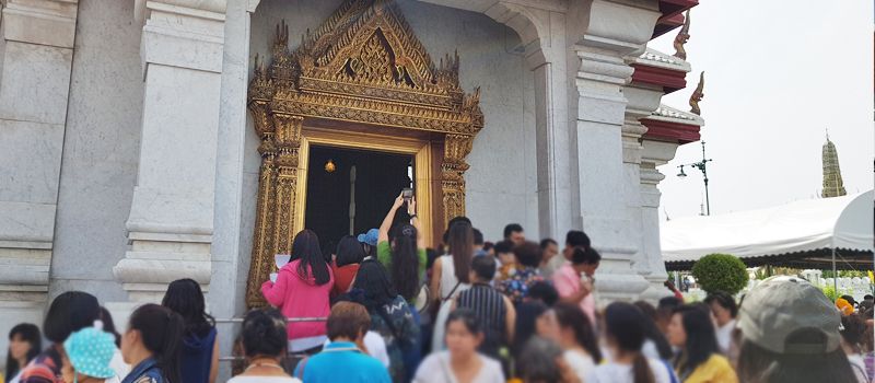 เดินมาถึงประตูทางเข้าที่ต้องเดินผ่านช่องประตูทางออกก่อน...ก็จะเข้าแต่ติดพ่อแม่ลูก...ที่พ่อเหมือนชะลอว่าจะไปทางไหนดี...ก็เลยขวางประตู...เลยมีชนนิดหน่อยเพราะรีบ...คือประตูมันแคบ....แล้วจะมาขวางตรงนี้ทำไม....เหมือนตัวพ่อไม่พอใจ...เราเลยหันไปมอง...แต่ตอนหันตัวพ่อหันไปมองลูกเมีย...เราเลยเดินไปเข้าช่องประตูที่แบ่งแยกคนไทย-คนต่างชาติ...เพื่อไปไหว้พระ...ก็นิสัยสันดานเลวอ่ะแหละ แต่เหนื่อย...เดินมาไกลมากๆ...ร้อนก็ร้อน...คนก็เยอะ...เกลียดคนเยอะมาก...แต่ก็อยากมาไหว้พระรับปีใหม่วันแรกของปี 2563