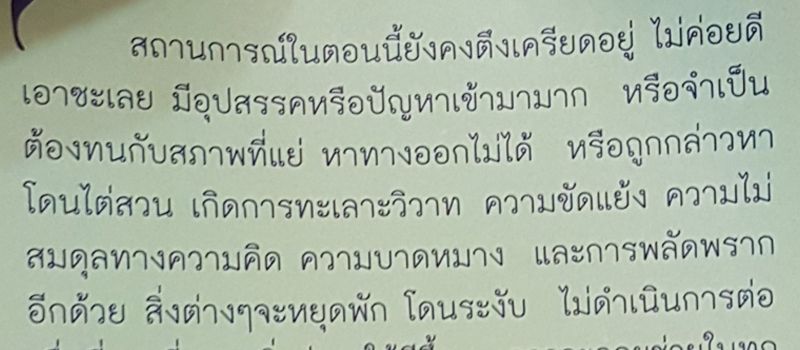 พี่เขาไลน์มาบอกว่าอยากกลับไปทำงานที่เก่า...ที่ที่เราเคยทำด้วยกันนี่แหละ...เพราะที่เขาอยู่...เงินดีกว่าแต่เพราะเขาเป็นเจ้านายก็เหมือนต้องดูแลลูกน้องและเลี้ยงลูกน้อง...เราก็สนับสนุนเขาว่าถ้าเขาคิดว่าดีแล้วก็ลองดู....เพราะเขาก็บอกว่าต้องเลี้ยงดูลูก...แม้ที่นี่ไกลกว่าที่ที่เขาทำอยู่...ตอนแรก...เขาจะไลน์บอกคุณ ย. ที่เหมือนคนรุ่นเก่าๆ ตอนที่เราอยู่ไม่ชอบ...แต่ก็ออกกันไปเกือบหมดแล้วแหละ...เรารู้สึกเหมือนโดนหักหลังไงไม่รู้....คือมันมีเรื่องก่อนหน้านั้นแต่นานแล้ว....ระหว่างเรากับคุณ ย. นี่แหละและในไลน์กลุ่มก็มีนินทาว่าคุณ ย. เยอะ...พอพี่เขาบอกจะคุยกับคุณ ย. เลยรู้สึกเหมือนโดนหักหลัง...แต่เราก็ยอมรับว่าเรื่องหลายๆ อย่าง..เราจะไม่มีชีวิตที่แย่แบบนี้..ถ้าเราไม่ใช้แต่อารมณ์มากกว่าสติ...และการคิดไม่รอบคอบ...ดังนั้นเราก็คือผิดหลายอย่าง...อันนี้ยอมรับ....เราก็บอกพี่เขาไปว่า...ทำไมไม่ไลน์หาคุณ ก. เพราะตอนที่พี่เขาจะออกตอนนั้น...คุณ ก. อยากให้พี่เขาอยู่มาก...พยายามคุยหลายครั้ง...เพราะพี่เขามีความสามารถแหละ...และเจ้านายเอ็นดู...พี่เขาเลยบอกก็ไลน์หาทั้ง 2 คนนั่นแหละ...เรา่ก็เลยมาคิดย้อนหลัง....ว่าพี่เขามีปัญหากับคุณ ย. นิ....หรือเคยว่านินทาคุณ ย. มั้ย...อยู่ๆ ถึงจะไปไลน์หาคุณ ย. ว่าอยากจะกลับไป...แต่พอมาคิดอีกทีคือเรื่องนานแล้ว....แต่นึกดู...อ้อ...พี่เขาไม่น่าจะมีเรื่องไรกับคุณ ย. ...ถึงมีก็อาจนิดเดียว....พี่เขามีปัญหากับคุณ ก.ซ. ที่ต้องทำงานเชื่อมโยงกัน...แบบพี่เขาเคยบอกเขาไม่อยากอยู่ต่อเพราะคุณ ก.ซ. นี่แหละ....แต่สรุป...เราก็ไม่รู้เรื่องต่อ..คืออยากถามพี่เขาแหละ..ไลน์แล้วเป็นไง...คุณ ก. และคุณ ย. ว่าอย่างไร....แต่ก็มาคิดคือเรื่องของเขาแหละ...และถ้าเขาไม่อยากเล่าให้เราฟังเราก็ไม่ควรไปถามไรเขามาก....เพราะถ้าเขาอยากบอกก็บอกเราเอง...ถ้าไม่..แม้เราอยากรู้...แต่ก็ไม่ควรถามเพราะความจริงไม่สนิท...ไม่เจอกันนานแล้ว...แต่เราเข้าใจว่าเขาบอกเราเพราะความจริงคนที่บริษัทเก่าที่อยู่ในช่วงเดียวกันมีไม่กี่คน...และไม่ใช่ทุกคน...ไปบอกเรื่องนี้ได้...พี่เขาก็เลยไลน์มาหาเรานั่นแหละ แต่เพราะพี่เขาไลน์มาเรื่องนี้...เราเลยเข้าไปดูเพจของบริษัทนี้ที่เราเคยทำ..คนที่ทำปัจจุบันก็ทำดีนะ...แต่เราเลื่อนๆ ลงไป....มันมีโพสต์แบบไปหาซื้อสินค้านี้ที่ร้านไหนได้บ้างในสนามบินสุวรรณภูมิ แล้วเราเศร้า...เพราะเราอ่ะอยากทำงานแล้วเก็บเงินเดินทางท่องเที่ยวต่างประเทศ...แต่ตอนนี้คงไม่มีหวังอีกแหละอยากตายจริงๆ...แม้เรามีไรอยากทำแต่ไม่มีวันทำได้...เราก็ไม่รู้มีชีวิตอยู่ไปเพื่ออะไร..ดูดราม่า แต่ใค